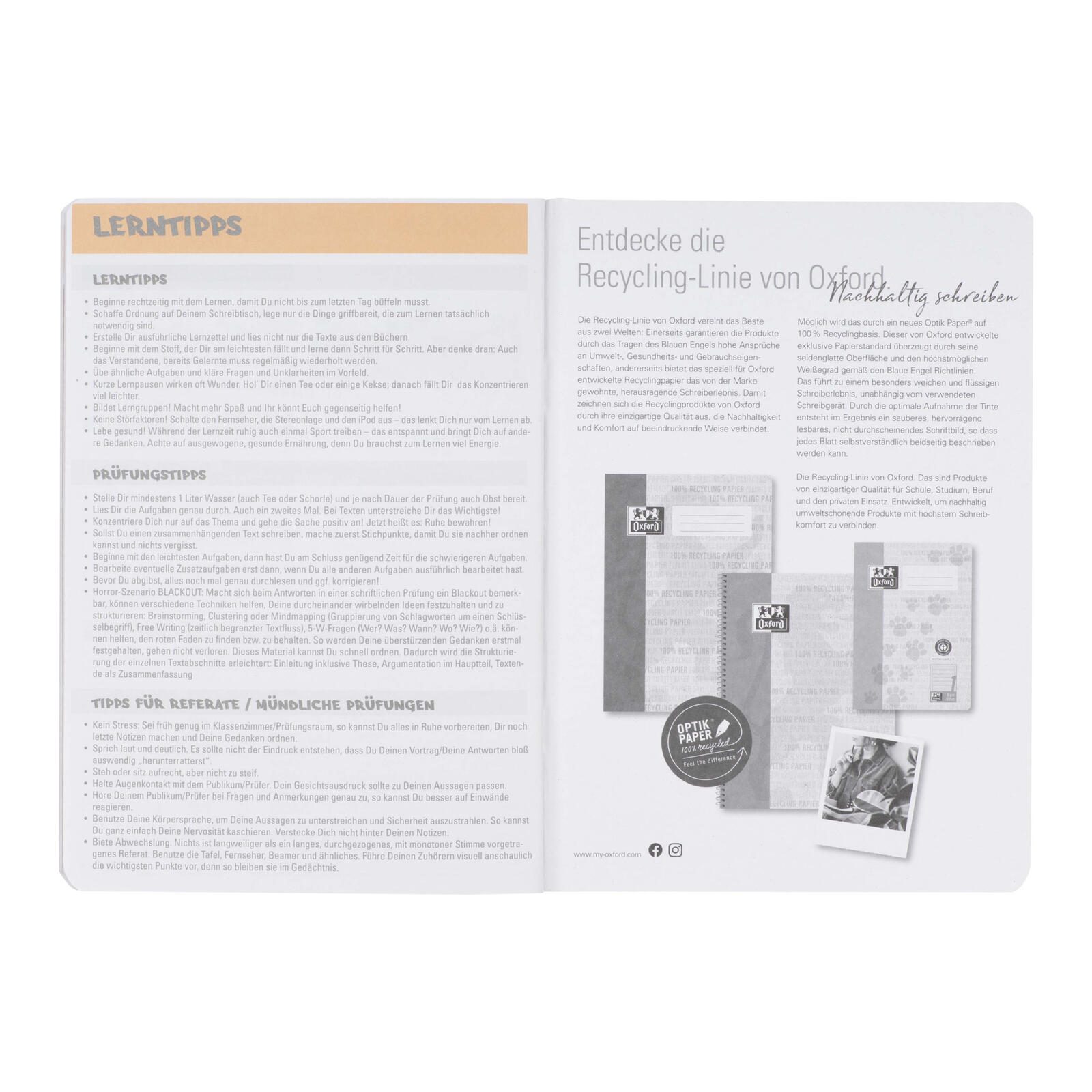 Das OXFORD Hausaufgabenheft bietet dir nicht nur die gewohnte Qualität der Marke OXFORD, sondern auch ein praktisches und umweltfreundliches Produkt für deinen Schulalltag. Mit einer perfekten Kombination aus Funktionalität und Nachhaltigkeit ist dieses Hausaufgabenheft die ideale Wahl für Schüler, die Wert auf Umweltschutz und Organisation legen.