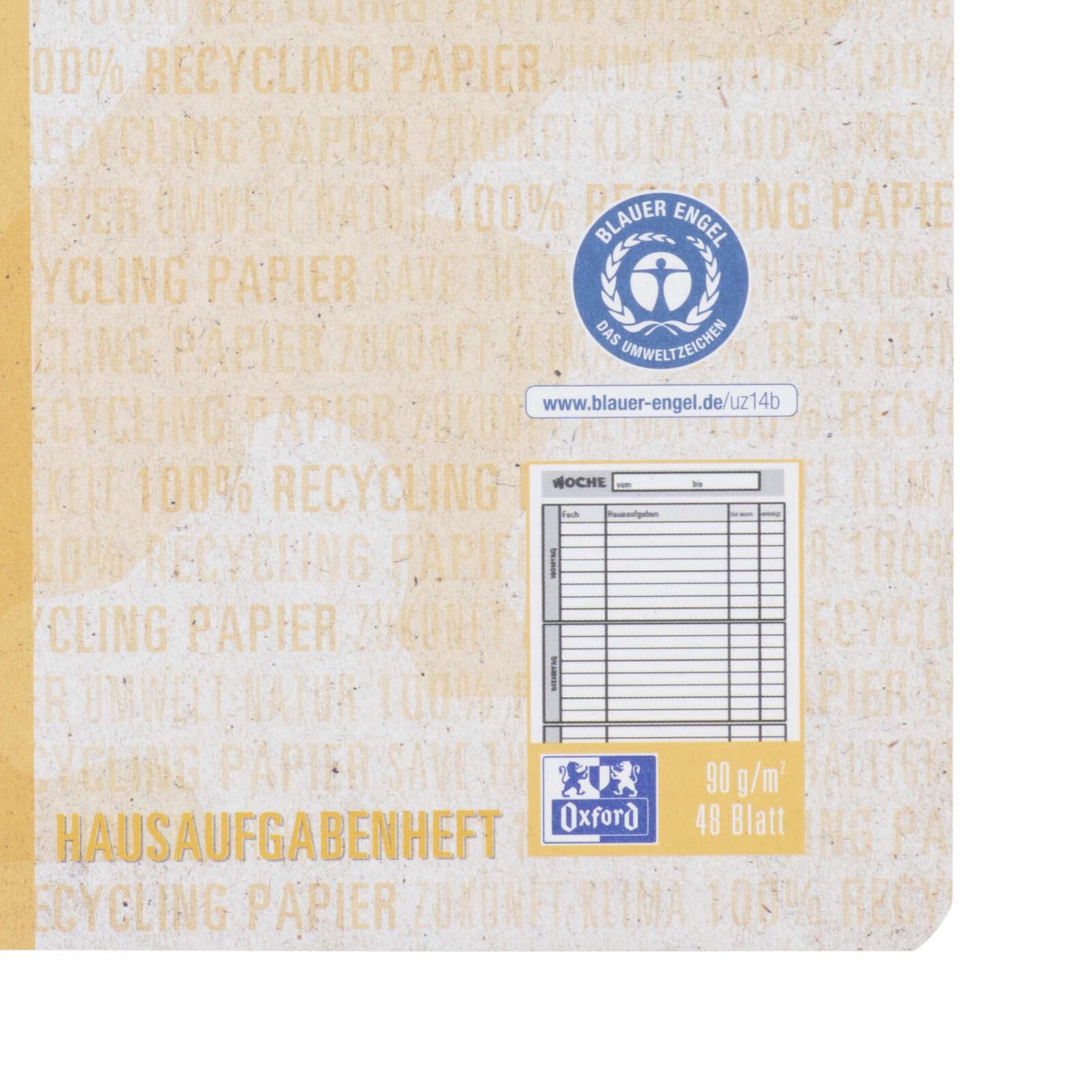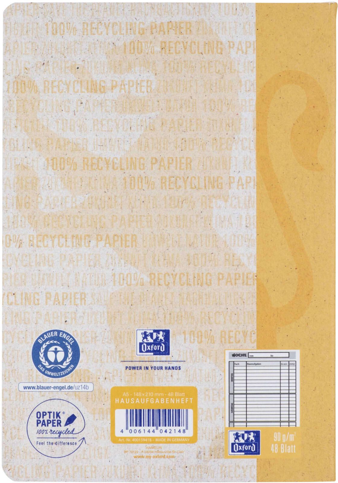 Die OXFORD Hausaufgabenhefte im DIN A5 Format mit 48 linierten Recyclingpapier-Blättern sind ideal für umweltbewusste Nutzer. Hergestellt aus chlorfreiem Recyclingpapier (PCF) sind sie nicht nur umweltfreundlich, sondern auch von hoher Qualität. Die Lineatur des Papiers ermöglicht ein klares und ordentliches Schreiben, um deine Hausaufgaben übersichtlich zu gestalten.