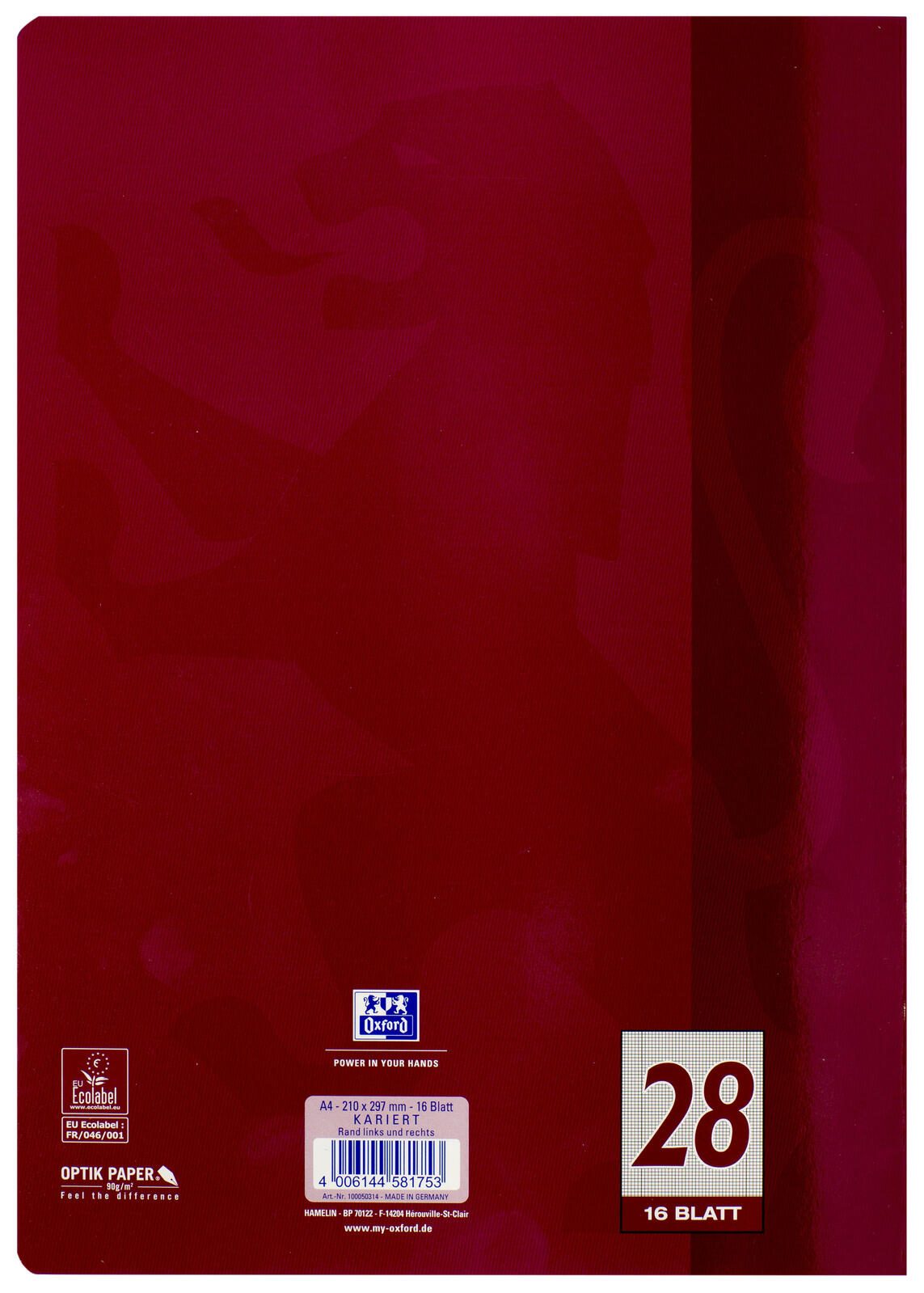 OXFORD Schulhefte Oxford Heft A4 kar.RD pflaume kariert DIN A4 16