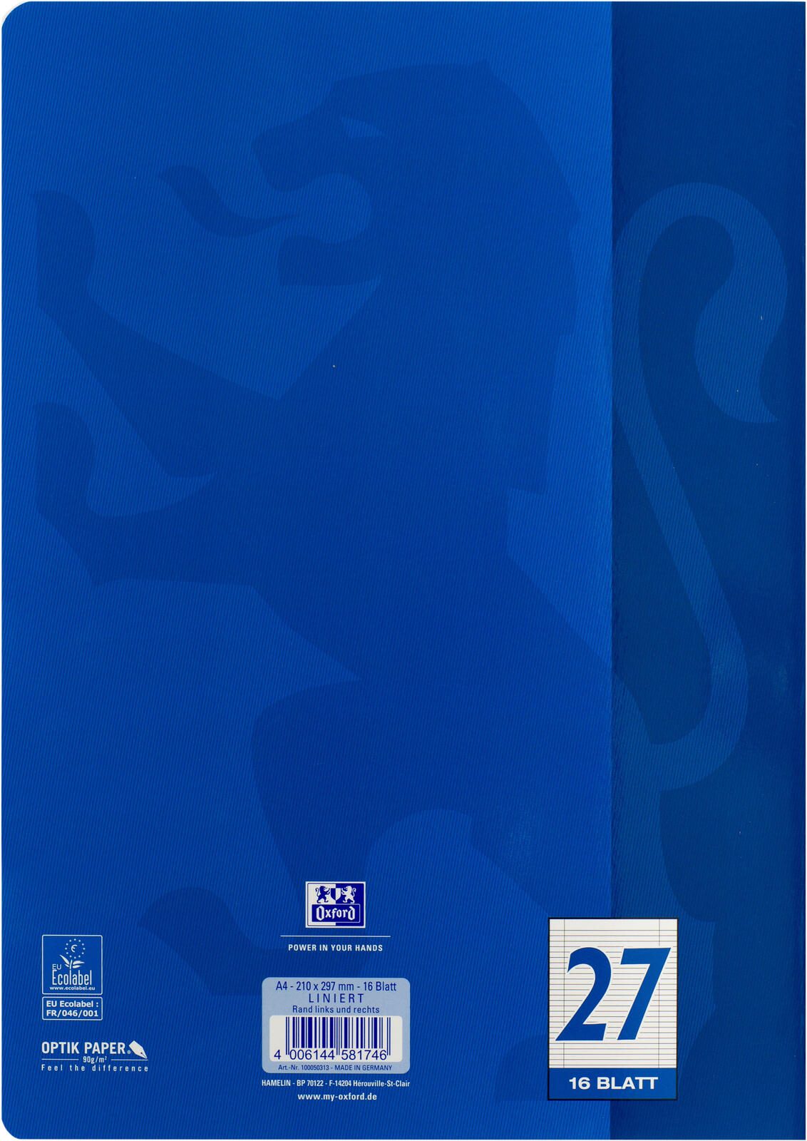 OXFORD Schulhefte Oxford Heft A4 lin.RD d´blau liniert DIN A4 16