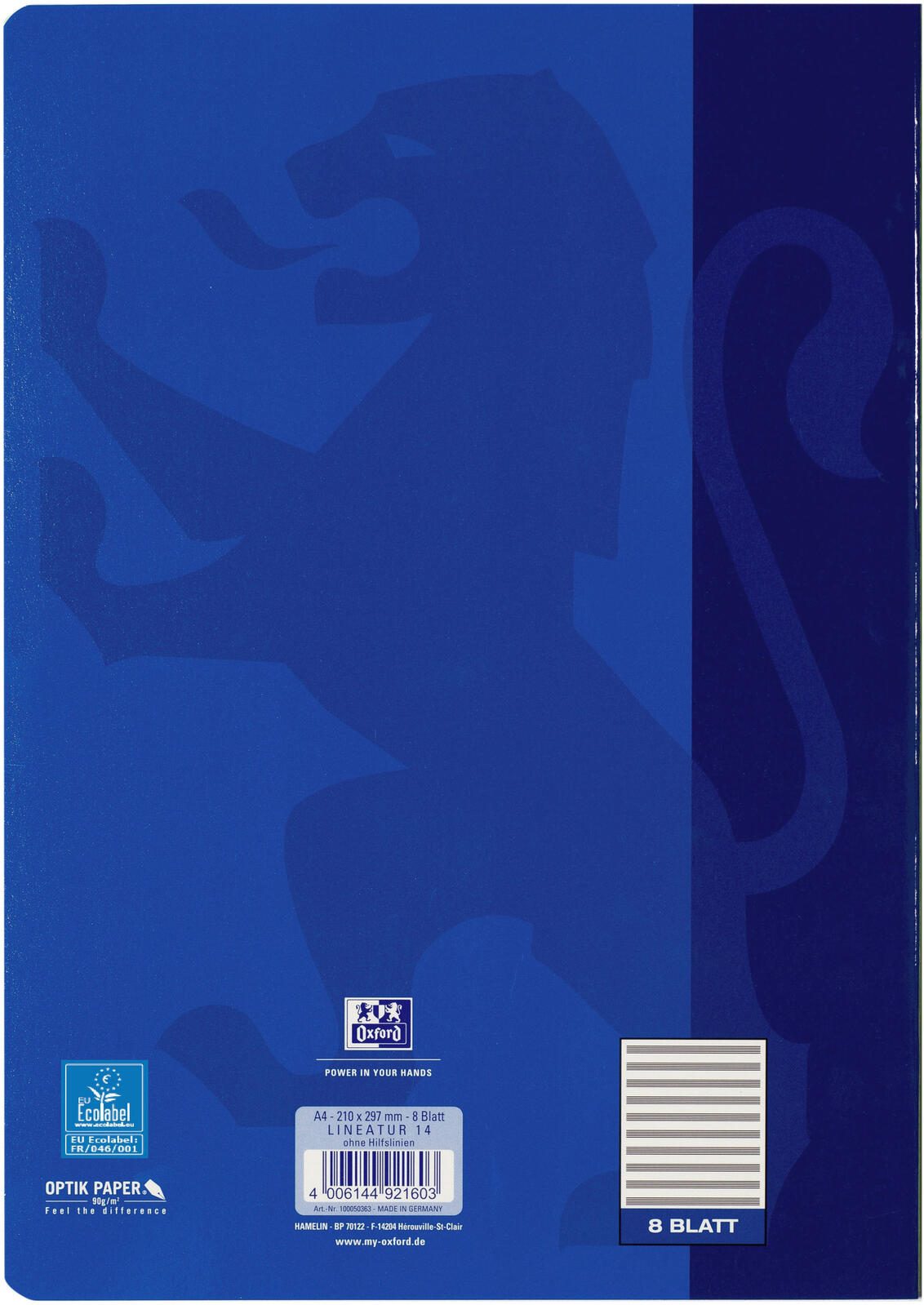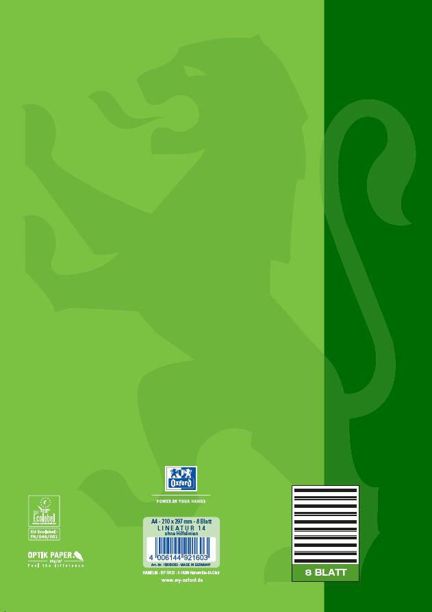 - Besonerheiten: Optik Paper (Hoher Schreibkomfort, hohe Reißfestigkeit , beidseitig beschreibbar, Tinte schlägt nicht durch, hochweiß und satiniert)