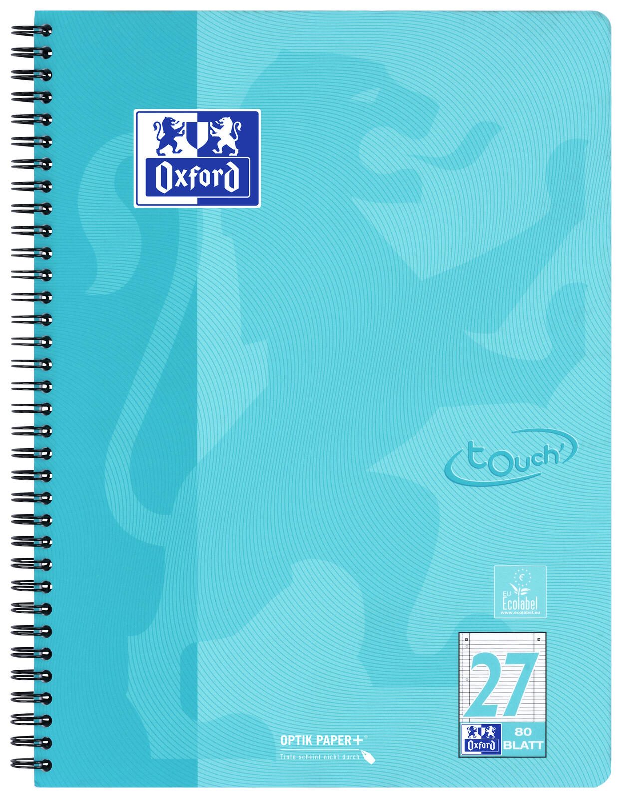 Oxford TOUCH Collegeblock DIN A4 liniert aqua, koralle, grasgrün