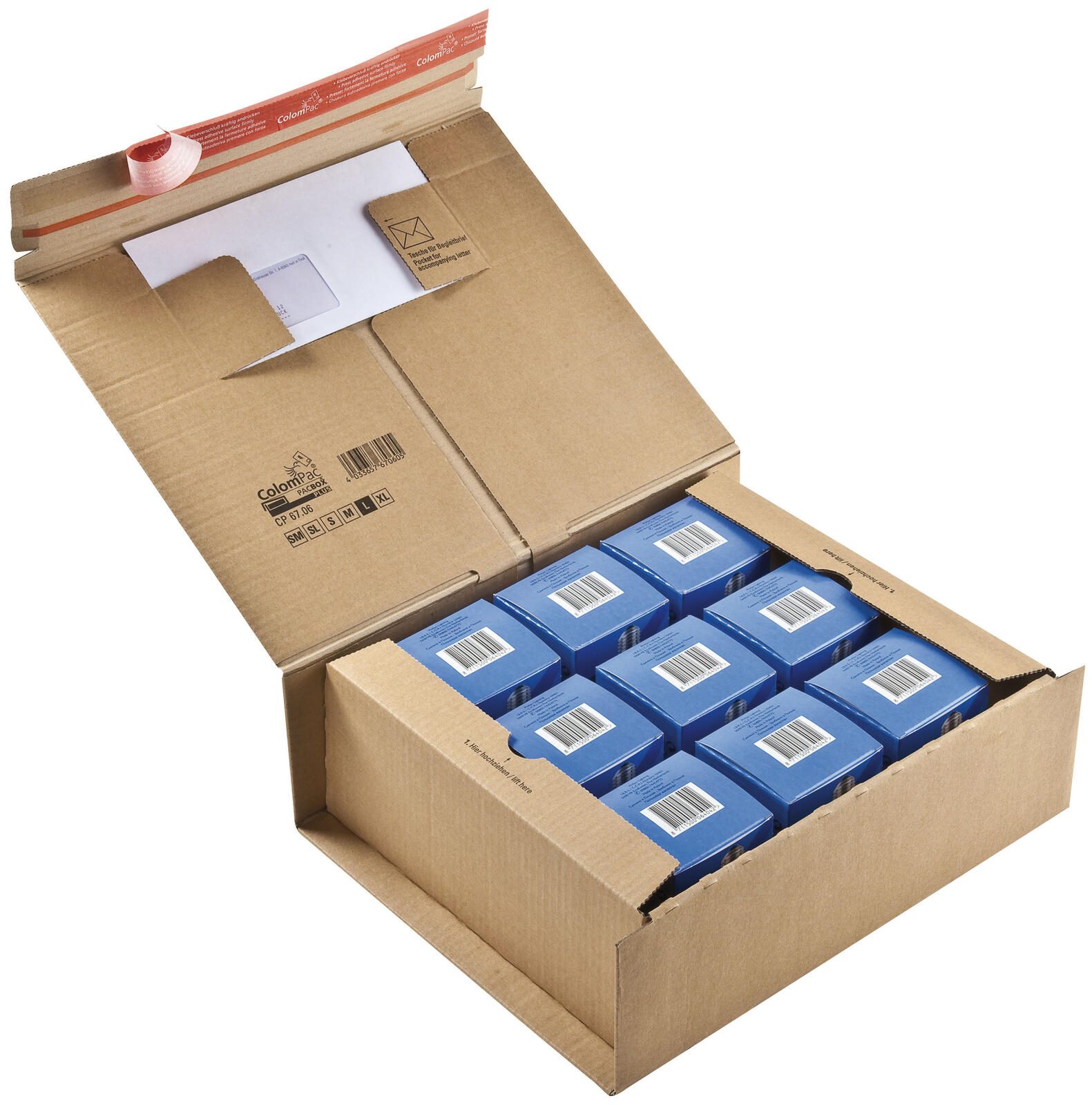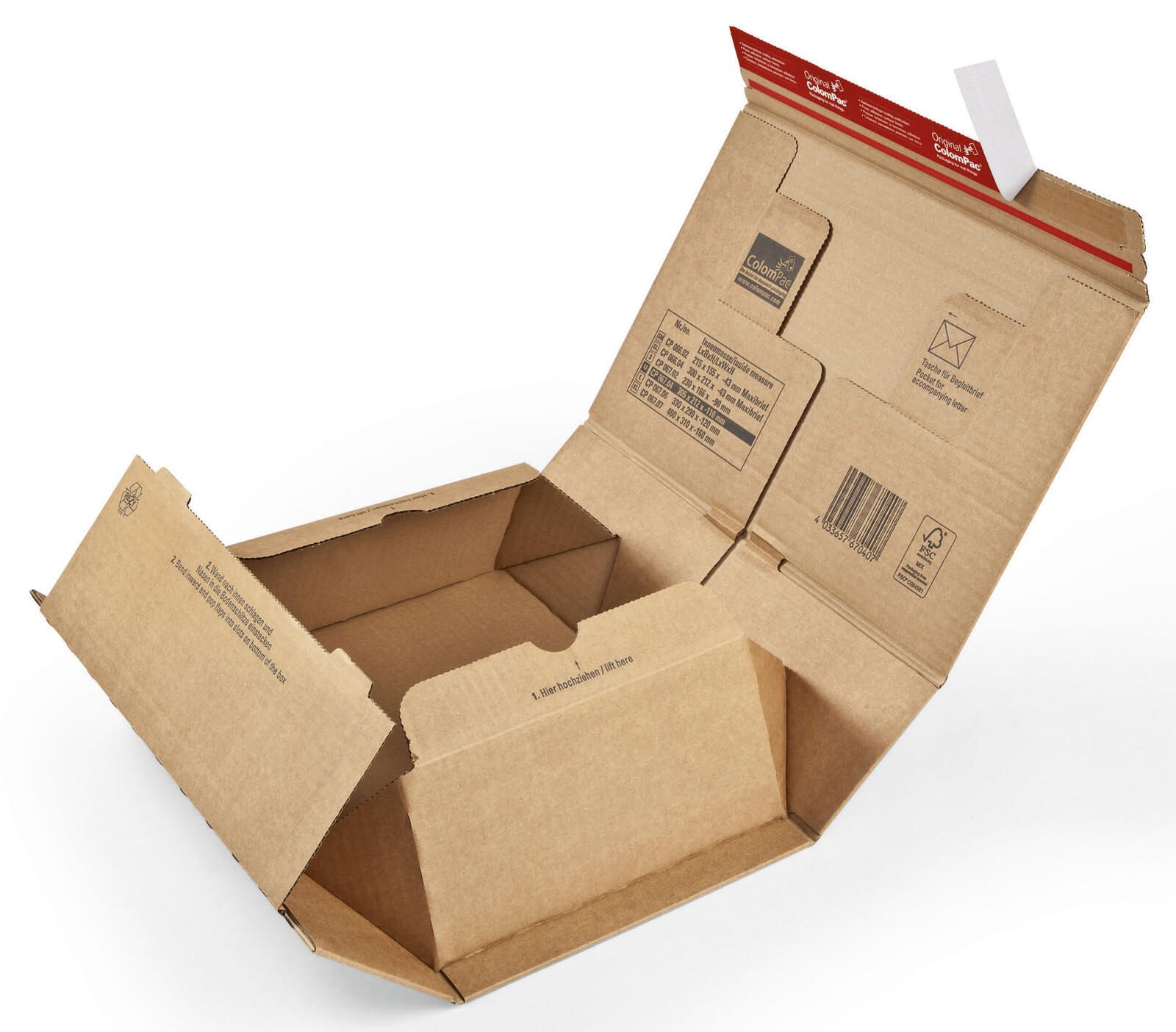 Die ColomPac® Versandkartons sind die ideale Lösung für den sicheren Versand deiner Waren. Mit einem Innenmaß von 33,0 x 29,0 x 12,0 cm bieten diese robusten Faltschachteln ausreichend Platz für verschiedene Produkte, egal ob Bücher, Kleidung oder Elektronik. Die Versandkartons bestehen aus hochwertiger Wellpappe, die nicht nur leicht, sondern auch äußerst stabil ist. Mit einem Eigengewicht von nur 299 Gramm sind sie leicht zu handhaben und tragen nicht unnötig zum Versandgewicht bei. Die braune Farbe der Kartons sorgt für eine ansprechende und professionelle Optik, die sich ideal für den Versand im gewerblichen Bereich eignet. Dank des praktischen Haftverschlusses ist ein schnelles und sicheres Verschließen der Kartons gewährleistet. So kannst du deine Sendungen effizient vorbereiten, ohne dir Gedanken über die Sicherheit deiner Produkte machen zu müssen. Ein Pack enthält 10 Versandkartons, was sie besonders wirtschaftlich macht. Ob für den Online-Handel oder den privaten Gebrauch, die ColomPac® Versandkartons sind vielseitig einsetzbar und bieten eine zuverlässige Lösung für deine Versandbedürfnisse. Die Serienbezeichnung CP067.06 steht für höchste Qualität und Zuverlässigkeit, die du beim Versand deiner Produkte erwarten kannst. Vertraue auf die bewährte Marke ColomPac® und profitiere von einem Produkt, das Funktionalität und Qualität miteinander vereint.Technische Daten