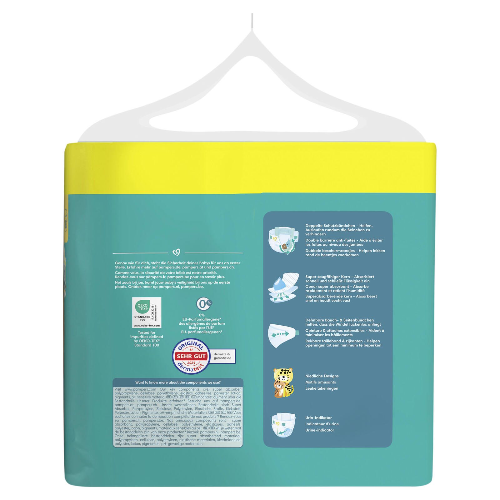 Die Windeln sind weiß und verfügen über mehrere wichtige Eigenschaften, die den Komfort und die Sicherheit Deines Babys unterstützen. Dazu gehören dermatologisch getestete Materialien, die sanft zur empfindlichen Haut sind, sowie Sicherheitsbündchen, die für einen sicheren Sitz sorgen. Ein integrierter Urin-Indikator zeigt zuverlässig an, wann ein Windelwechsel erforderlich ist. Zudem sind die Windeln unparfümiert und somit besonders hautfreundlich.