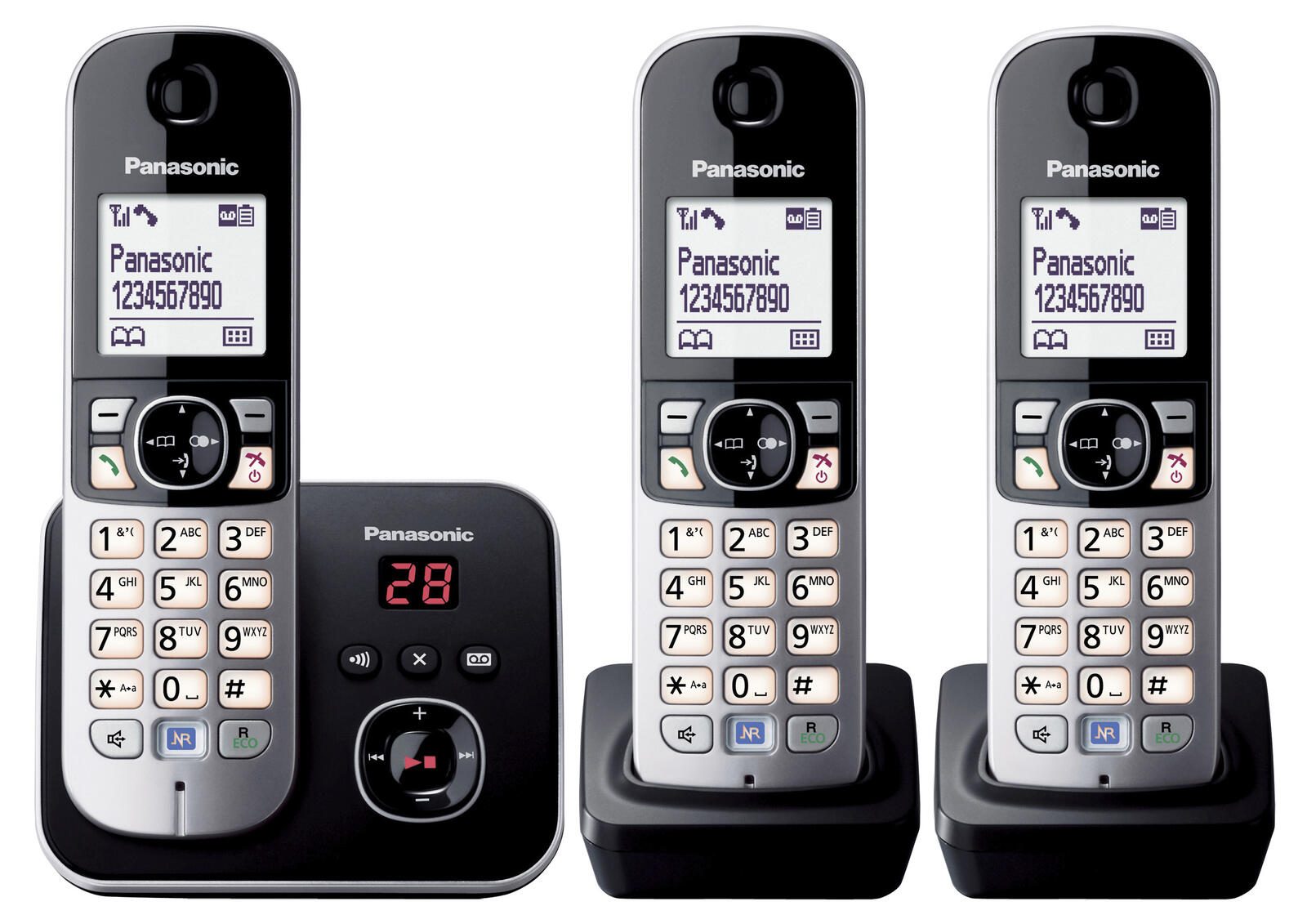 Panasonic Schnurloses Telefon-Set mit Anrufbeantworter KX-TG6823GB schwarz-silber