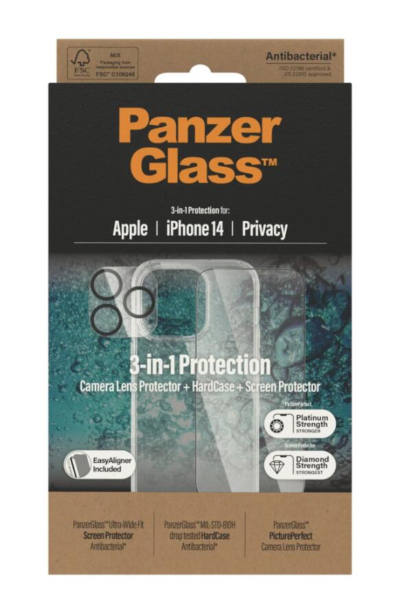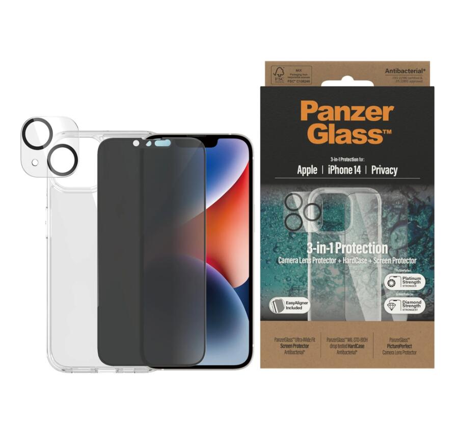 PanzerGlass® 3-in-1 Privacy Schutzset für iPhone 14