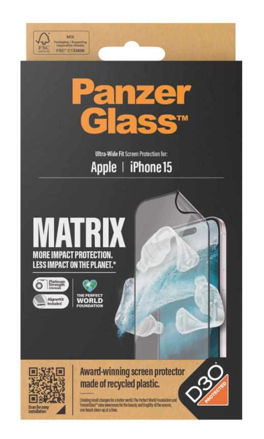 PanzerGlass® Matrix Displayschutz mit D30 für iPhone 15