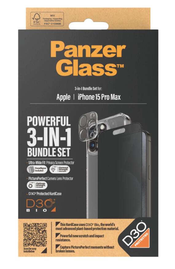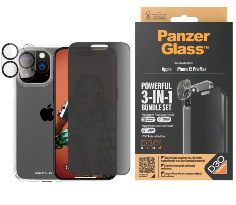 PanzerGlass® Privacy 3-in-1 Set - iPhone 15 Pro Max Privacy Display- & Kamera-Schutzfolie & D30 Protected HardCase