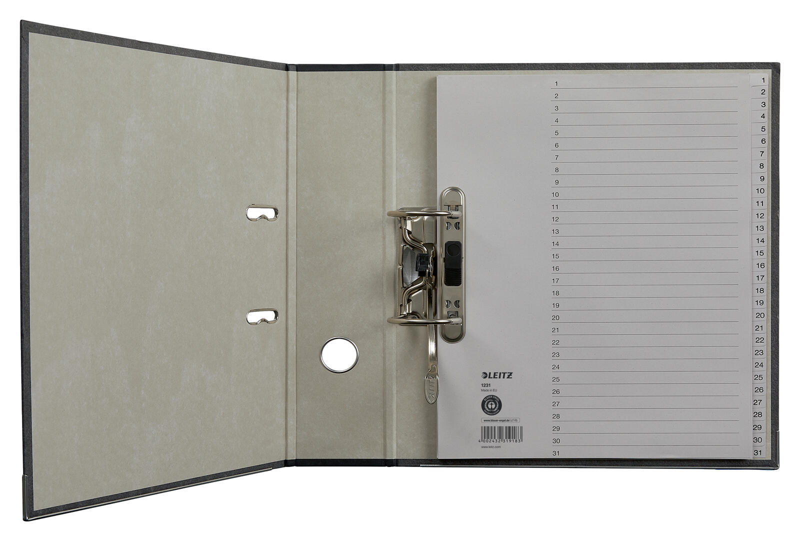 Das LEITZ Ordnerregister Vollformat in grau ist die perfekte Lösung für eine übersichtliche und strukturierte Ablage deiner Dokumente im DIN A4 Format. Mit einer Teilung von 31 Teilen bietet dieses Register eine effiziente Möglichkeit, deine Unterlagen nach Zahlen zu sortieren, wodurch du schnell auf die benötigten Informationen zugreifen kannst. Die Taben sind von 1 bis 31 nummeriert und ermöglichen eine einfache Navigation durch deine Ordner.