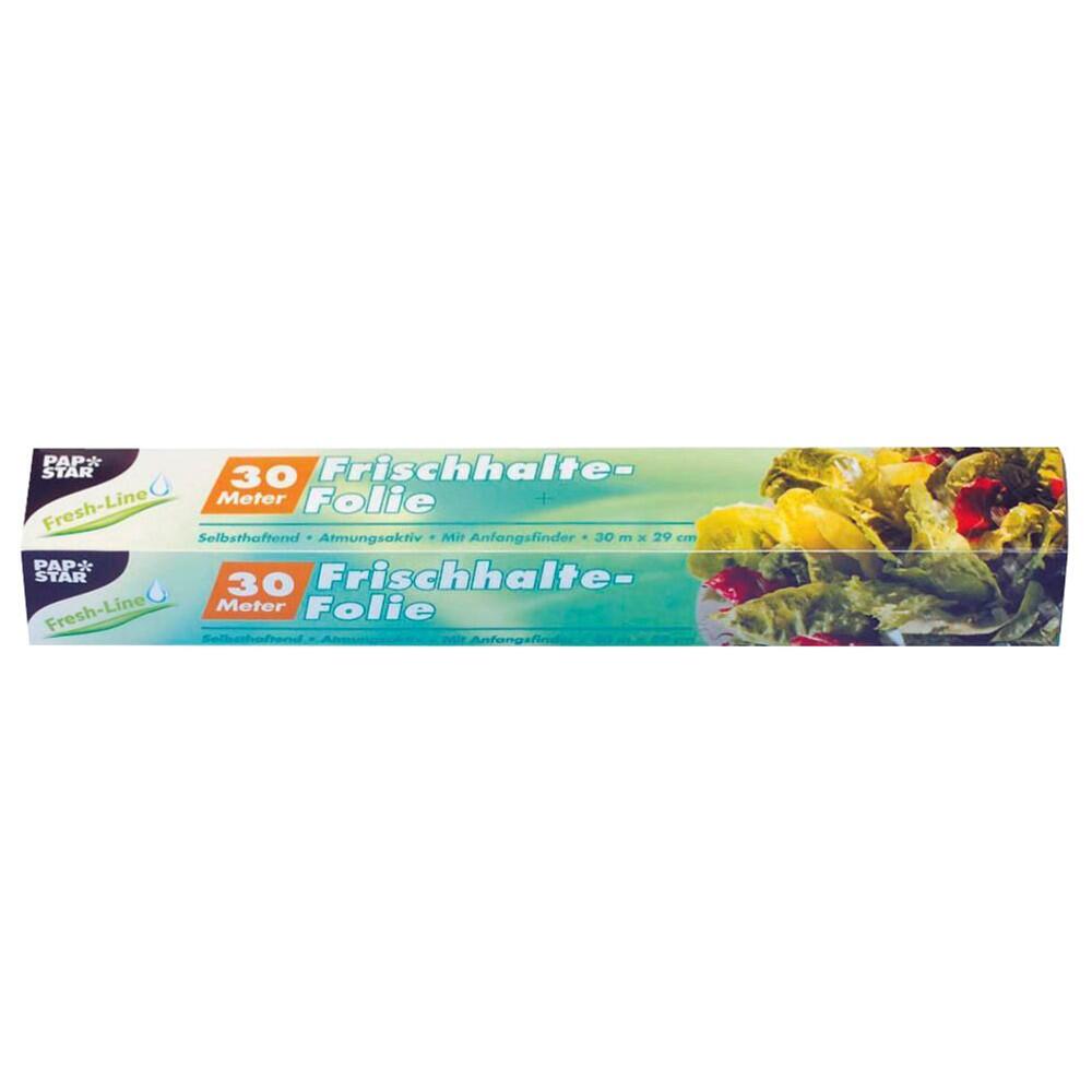 Die PAPSTAR Frischhaltefolie ist die perfekte Lösung, um deine Lebensmittel frisch und aromatisch zu halten. Mit ihrer elastischen und gut haftenden Beschaffenheit sorgt sie dafür, dass deine Speisen optimal geschützt sind. Egal, ob du Reste vom Abendessen aufbewahren oder frisches Obst und Gemüse einwickeln möchtest, diese Frischhaltefolie ist ideal dafür geeignet. Sie bietet eine praktische Undurchlässigkeit für Gase und Aromastoffe, sodass die Qualität deiner Lebensmittel über längere Zeit erhalten bleibt. Hergestellt aus hochwertigem Polyethylen, hat die PAPSTAR Frischhaltefolie eine Materialstärke von 11 µm, was sie robust und langlebig macht. Mit einer großzügigen Länge von 30,0 m und einer Breite von 29,0 cm bietet sie ausreichend Fläche, um auch größere Lebensmittelportionen problemlos einzuwickeln. Die transparente Ausführung ermöglicht es dir, den Inhalt auf einen Blick zu erkennen, ohne die Folie öffnen zu müssen. Die PAPSTAR Frischhaltefolie ist ein Einwegprodukt, das sich durch seine einfache Handhabung auszeichnet. Nach der Verwendung kann sie unkompliziert entsorgt werden, was dir Zeit und Mühe spart. Ihre vielseitige Anwendbarkeit macht sie zu einem unverzichtbaren Küchenhelfer, der in keinem Haushalt fehlen sollte. Mit der PAPSTAR Frischhaltefolie kannst du sicher sein, dass deine Lebensmittel frisch bleiben und ihre Aromen bewahrt werden. Sie ist die ideale Wahl für alle, die Wert auf Qualität und Frische legen.Weiterlesen