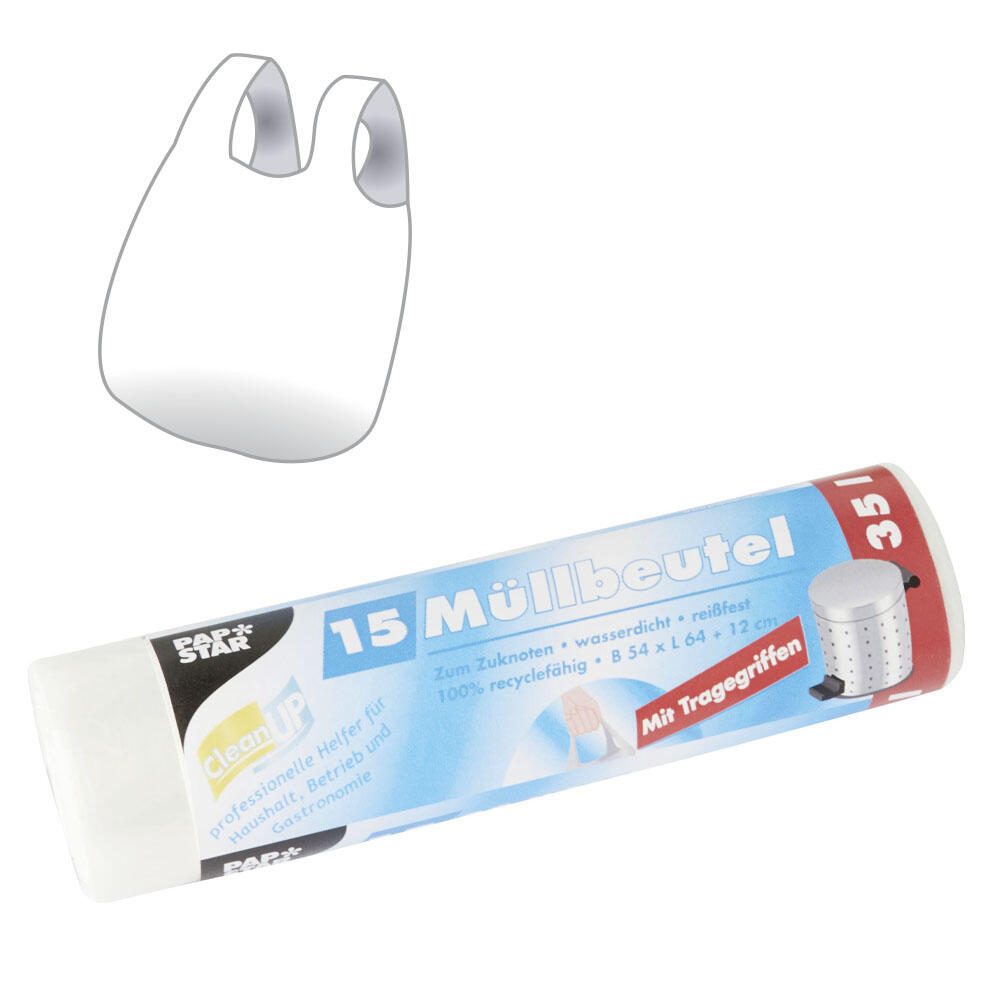 Die PAPSTAR Müllbeutel mit einem Fassungsvermögen von 35,0 Litern sind die ideale Lösung für deinen Abfallbedarf. Diese transparenten Müllbeutel sind nicht nur funktional, sondern auch besonders robust. Mit einer Stärke von 12 Mikron bieten sie eine zuverlässige und langlebige Option, um deinen Müll sicher zu transportieren und zu entsorgen. Die transparente Farbe ermöglicht es dir, den Inhalt der Beutel auf einen Blick zu erkennen, was besonders praktisch ist, wenn du den Müll trennst oder entsorgst. Die Müllbeutel sind perfekt für den Einsatz in Haushalten, Büros oder bei Veranstaltungen, wo eine große Menge an Abfall anfällt. Dank der hochwertigen Verarbeitung von PAPSTAR kannst du dich auf eine hohe Qualität verlassen. Die Beutel sind so konzipiert, dass sie auch bei vollem Inhalt nicht reißen oder auslaufen, was dir zusätzliche Sicherheit bei der Müllentsorgung gibt. Mit 15 Stück pro Packung bist du zudem bestens ausgestattet, um deine Abfallentsorgung über einen längeren Zeitraum hinweg zu gewährleisten. Die PAPSTAR Müllbeutel 35,0 l sind nicht nur praktisch, sondern tragen auch zur Sauberkeit und Ordnung in deinem Umfeld bei. Vertraue auf die Qualität von PAPSTAR und erlebe, wie einfach und unkompliziert Müllentsorgung sein kann.Technische Daten