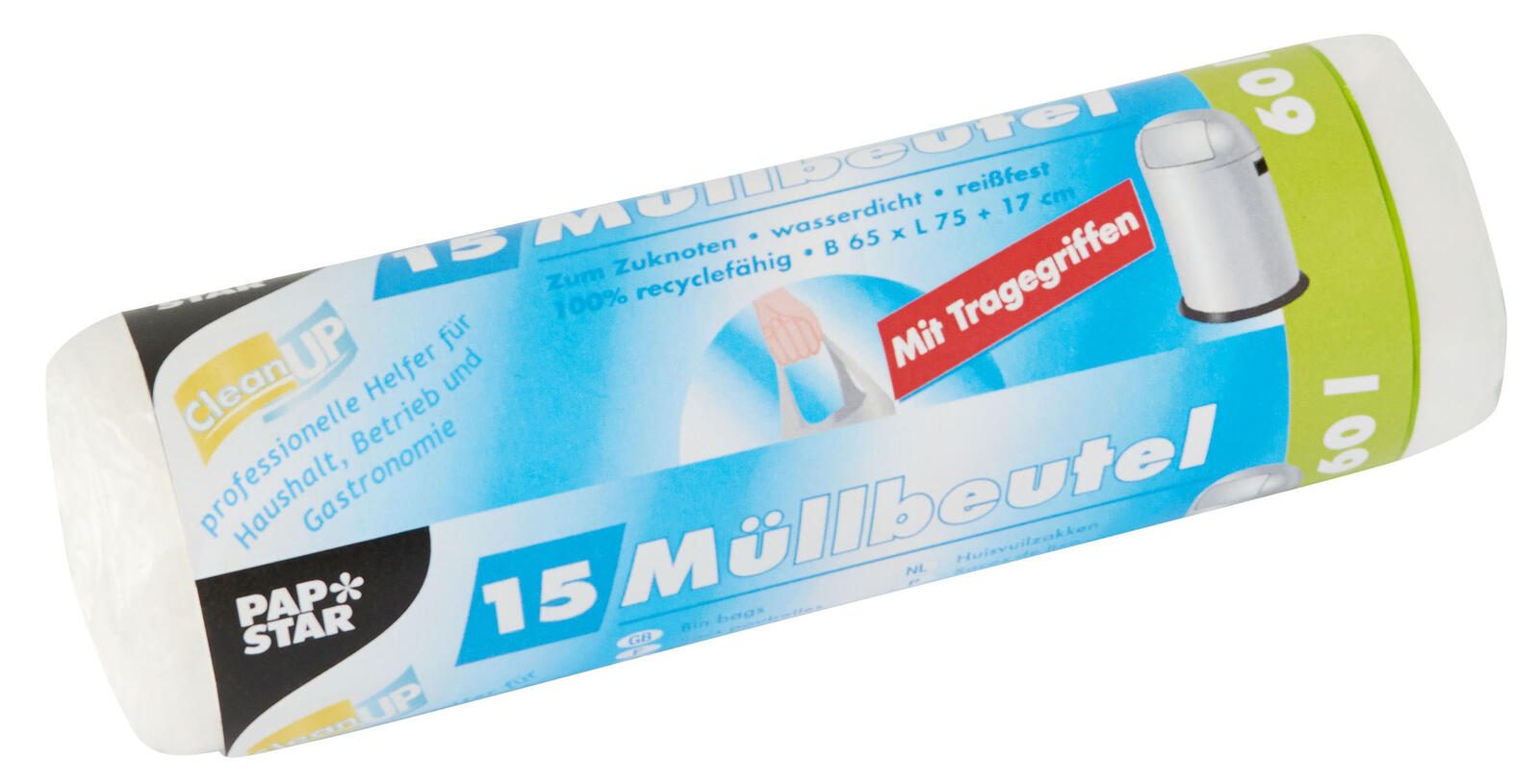Die PAPSTAR Müllbeutel 60,0 l sind die ideale Lösung für deine Abfallentsorgung. Mit einem beeindruckenden Fassungsvermögen von 60 Litern bieten diese transparenten Müllbeutel ausreichend Platz für alle deine Abfälle, egal ob im Haushalt, im Büro oder bei Veranstaltungen. Die hohe Qualität der Beutel zeigt sich in ihrer Stärke von 12 Mikron, die für eine zuverlässige und sichere Handhabung sorgt. Diese Müllbeutel sind nicht nur robust, sondern auch praktisch. Ihr transparentes Design ermöglicht es dir, den Inhalt auf einen Blick zu erkennen, was besonders bei der Mülltrennung von Vorteil ist. So behältst du jederzeit den Überblick und kannst sicherstellen, dass die richtigen Materialien in die richtigen Behälter gelangen. Die PAPSTAR Müllbeutel werden in einer praktischen Packung mit 15 Stück geliefert, sodass du immer genügend Vorrat zur Verfügung hast. Die Beutel sind vielseitig einsetzbar und eignen sich hervorragend für die Entsorgung von Küchenabfällen, Gartenabfällen oder anderen Haushaltsresten. Mit den PAPSTAR Müllbeuteln entscheidest du dich für eine umweltbewusste und praktische Lösung, die dir das Leben erleichtert. Vertraue auf die Qualität von PAPSTAR und genieße eine mühelose Abfallentsorgung.Technische Daten