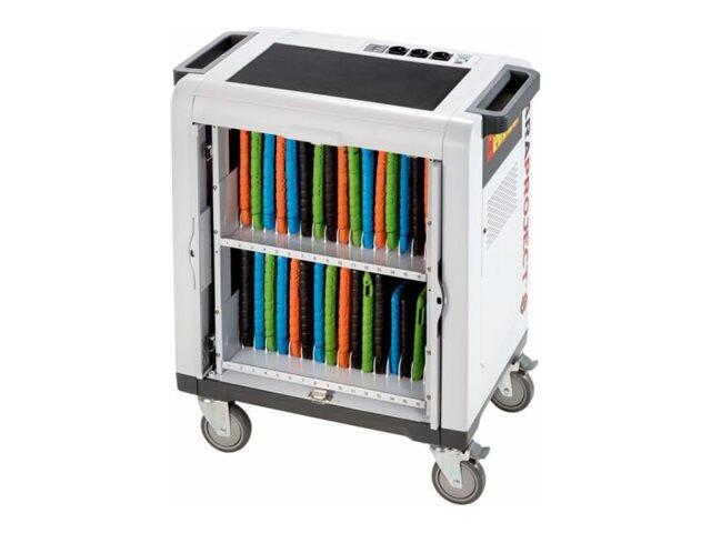 2x 16 vertikale Fächer für je ein Tablet (mit Schutzhülle)