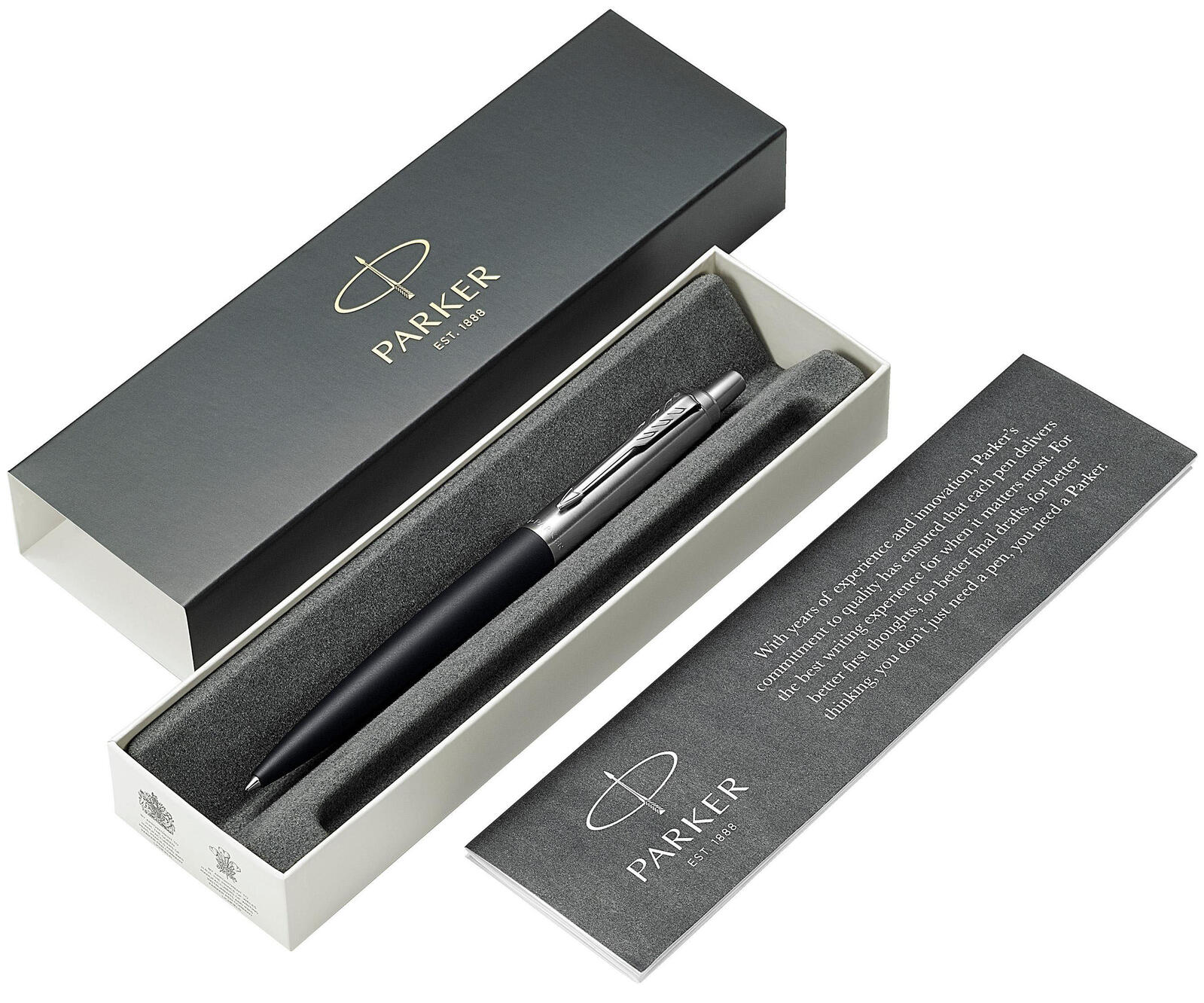 Der Kugelschreiber kommt in einem zeitlosen schwarzen Farbton, der zu jedem Stil passt. Die Mine des Kugelschreibers ist eine Parker QUINKFlow, die für ihre Langlebigkeit und Zuverlässigkeit bekannt ist. Die Schreibfarbe ist in einem ansprechenden Blau gehalten, das Aufmerksamkeit erregt und Notizen lebendig werden lässt.