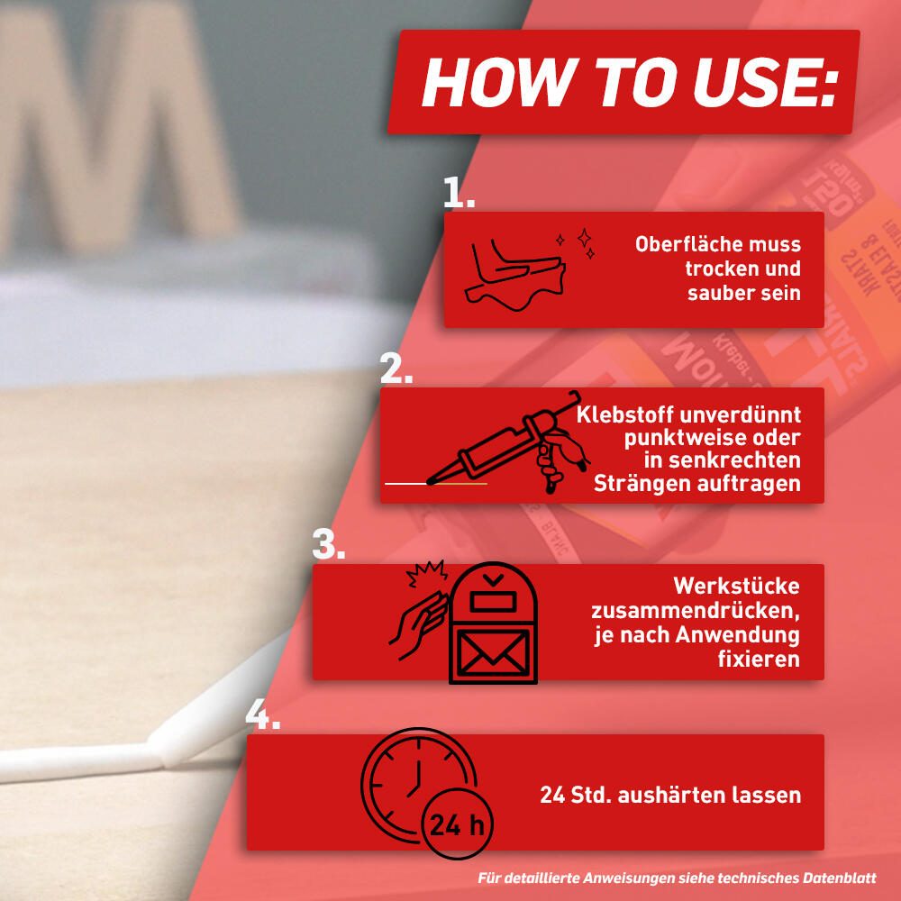 - Eigenschaften: elastisch, flexibel, stark klebend