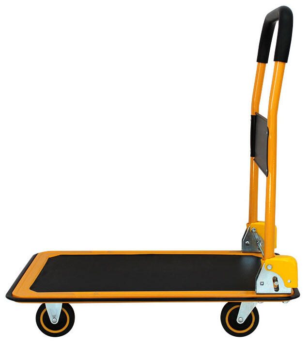 Die gelbe Farbgebung sorgt für gute Sichtbarkeit und erleichtert das Auffinden des Wagens in Arbeitsumgebungen. Durch die Gummiräder ist der Transportwagen leicht zu bewegen und bietet ausreichend Sicherheit beim Rangieren auf verschiedenen Untergründen. Insgesamt stellt dieser Transportwagen eine stabile und funktionale Lösung für den sicheren Transport von Lasten bis 300 kg dar.