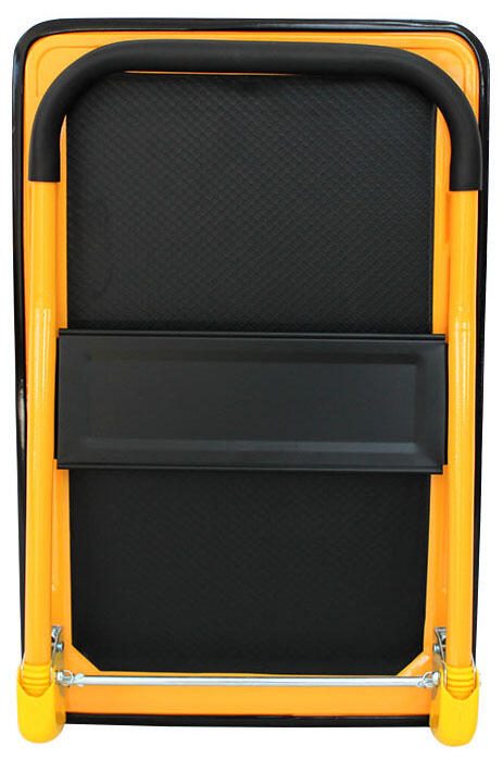 Der Wagen verfügt über eine einzelne Ebene und ist klappbar, was die Handhabung und Lagerung erleichtert. Das Gestell besteht ebenfalls aus Stahl, was für Stabilität und Langlebigkeit sorgt. Die Kombination aus hochwertigen Materialien und durchdachtem Design macht den Transportwagen zu einem zuverlässigen Helfer in Werkstatt und Lager.