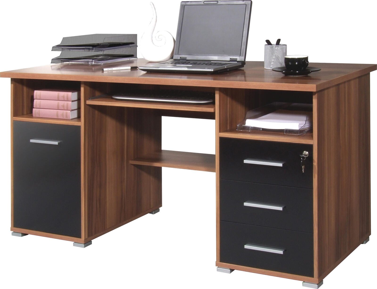 GERMANIA Schreibtisch 0484-87 Walnuß-Nb./Schwarz