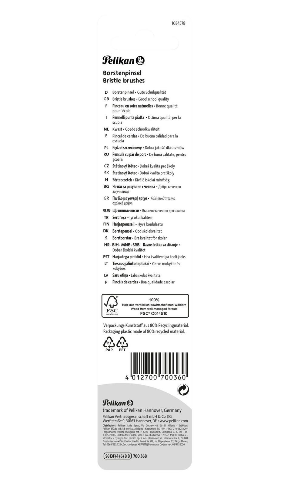 Das Pelikan Pinsel-Set 3-teilig ist die ideale Wahl für kreative Köpfe, die mit Deckfarben arbeiten. Dieses hochwertige Set besteht aus drei Borstenpinseln, die speziell für die Verwendung mit Deckfarbkasten entwickelt wurden. Jedes Pinsel bietet dir die Möglichkeit, deine künstlerischen Fähigkeiten voll auszuschöpfen und deine Malerei auf ein neues Level zu heben. Die Borstenpinsel zeichnen sich durch ihre hervorragende Verarbeitung und Strapazierfähigkeit aus. Sie sind perfekt geeignet, um sowohl feine Details als auch breite Flächen zu gestalten. Dank der unterschiedlichen Pinselgrößen innerhalb des Sets kannst du flexibel auf deine individuellen Malbedürfnisse eingehen. Ob du nun zarte Linien ziehen oder große Farbflächen ausmalen möchtest, mit diesem Set hast du die richtigen Werkzeuge zur Hand. Pelikan ist ein renommierter Hersteller, der für seine qualitativ hochwertigen Produkte bekannt ist. Mit dem Pelikan Pinsel-Set 3-teilig erhältst du nicht nur eine praktische Ausstattung für dein kreatives Schaffen, sondern auch ein Produkt, das dir langanhaltende Freude bereiten wird. Die Borsten sind so konzipiert, dass sie auch nach mehrmaligem Gebrauch ihre Form behalten und somit eine gleichbleibend hohe Leistung bieten. Egal, ob du ein Hobbykünstler bist oder einfach nur Spaß am Malen hast, das Pelikan Pinsel-Set ist ein unverzichtbares Zubehör für deine künstlerischen Projekte. Es ermöglicht dir, deine Kreativität auszuleben und beeindruckende Kunstwerke zu schaffen, die deine persönliche Note widerspiegeln. Mit dieser Auswahl an Pinseln bist du bestens ausgestattet, um deine Ideen in die Realität umzusetzen.Technische Daten