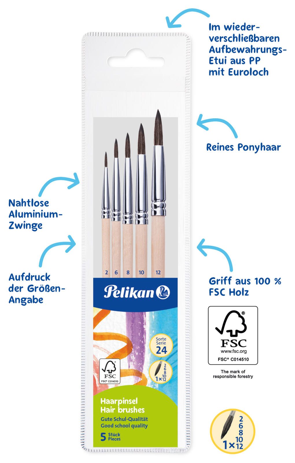 Pelikan Haarpinsel-Pinsel Set Größe 2, 6, 8, 10, 12