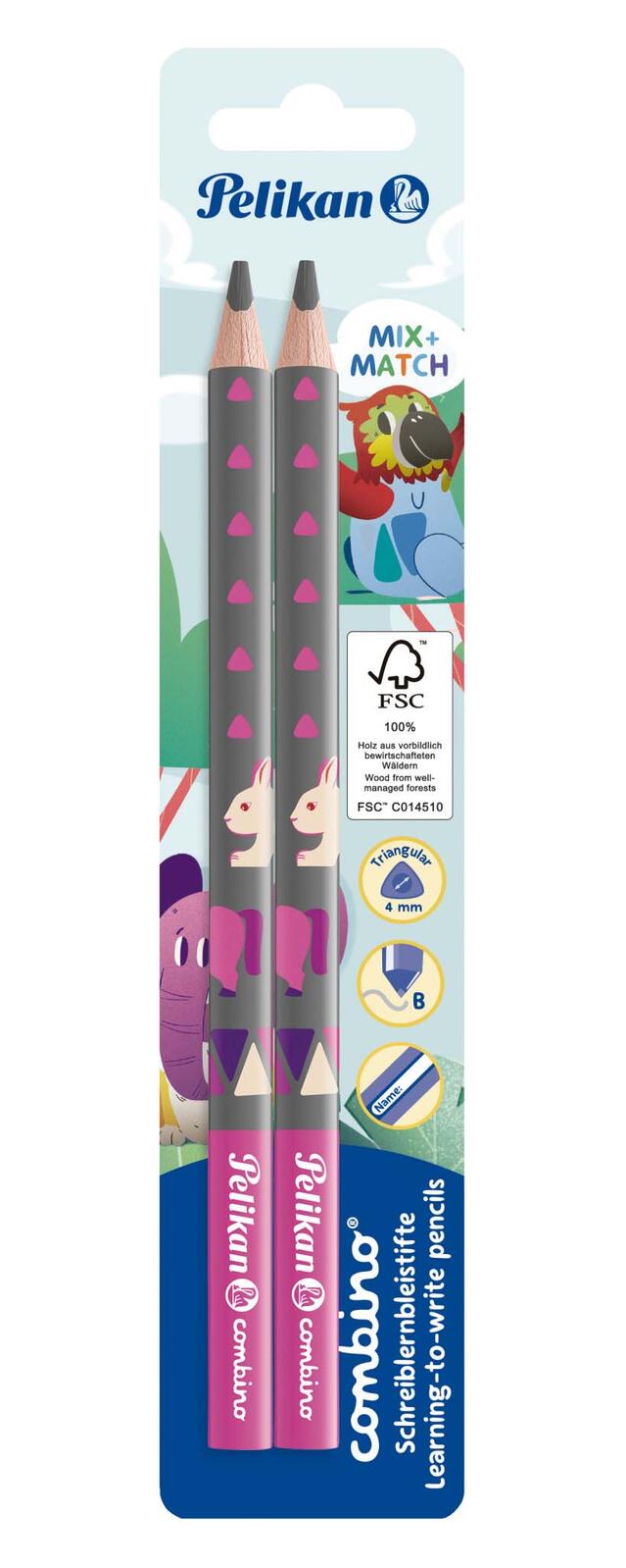 Die Pelikan Bleistifte Combino Schreiblern- sind die ideale Wahl für kleine Schriftsteller, die das Schreiben lernen. Diese speziell für Rechtshänder entwickelten Bleistifte bieten eine ergonomische Dreikantform, die eine natürliche Handhaltung fördert und das Schreiben einfacher und komfortabler macht. Der Schaft der Bleistifte ist in einem ansprechenden Pink mit einem niedlichen Tiermotiv gestaltet, was sie besonders attraktiv für Kinder macht. Diese farbenfrohe Gestaltung sorgt nicht nur für Spaß beim Schreiben, sondern hilft auch, die Motivation zu steigern und das Interesse am Lernen zu fördern. Mit einem Härtegrad von B bieten die Bleistifte eine perfekte Balance zwischen Weichheit und Festigkeit, sodass sie sowohl für das Zeichnen als auch für das Schreiben geeignet sind. Die Jumbo-Ausführung sorgt dafür, dass die Stifte gut in der Hand liegen und die Kinder leicht mit ihnen arbeiten können. Jede Packung enthält zwei hochwertige Bleistifte, die sich ideal für den Einsatz in der Schule oder zu Hause eignen. Die Pelikan Bleistifte Combino Schreiblern- sind nicht nur funktional, sondern auch ein stylisches Accessoire für den Schulalltag. Sie unterstützen die Entwicklung der Schreibfähigkeiten und machen das Lernen zu einem positiven Erlebnis. Entdecke die Freude am Schreiben mit den Pelikan Bleistiften Combino Schreiblern-, die speziell für die Bedürfnisse von Kindern entwickelt wurden.Technische Daten
