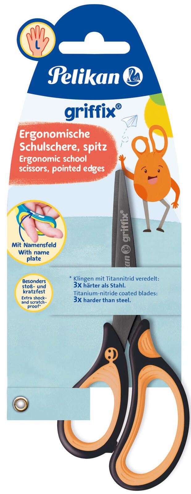 Die Pelikan Linkshänder-Papierschere mit einer Länge von 14 cm ist speziell für die Bedürfnisse von Linkshändern konzipiert und bietet eine optimale Handhabung für präzise Schneidarbeiten. Diese Schere ist nicht nur funktional, sondern auch in einem ansprechenden schwarz-orange Farbton gestaltet, der sie zu einem attraktiven Werkzeug für Kinder und Erwachsene macht. Die spitze Form der Klinge ermöglicht ein genaues Schneiden von Papier, während das hochwertige Material aus Stahl für Langlebigkeit und scharfe Schneideigenschaften sorgt. Der Griff besteht aus robustem Kunststoff, der angenehm in der Hand liegt und eine einfache Bedienung gewährleistet. Dies ist besonders wichtig für Kinder, die gerade das Schneiden lernen, da sie so eine bessere Kontrolle über die Schere haben. Die Pelikan Linkshänder-Papierschere ist ideal für den Einsatz in Schulen, bei Bastelprojekten oder für kreative Arbeiten zu Hause. Sie eignet sich hervorragend für das Schneiden von Papier und unterstützt dabei die motorischen Fähigkeiten und die Kreativität. Mit dieser Schere können Linkshänder mühelos arbeiten, ohne sich mit herkömmlichen Scheren abmühen zu müssen, die oft nicht ergonomisch für sie gestaltet sind. Die Pelikan Schere LH ist damit das perfekte Werkzeug, um das Schneiden zu einer positiven Erfahrung zu machen und die Freude am Kreativen zu fördern.Technische Daten