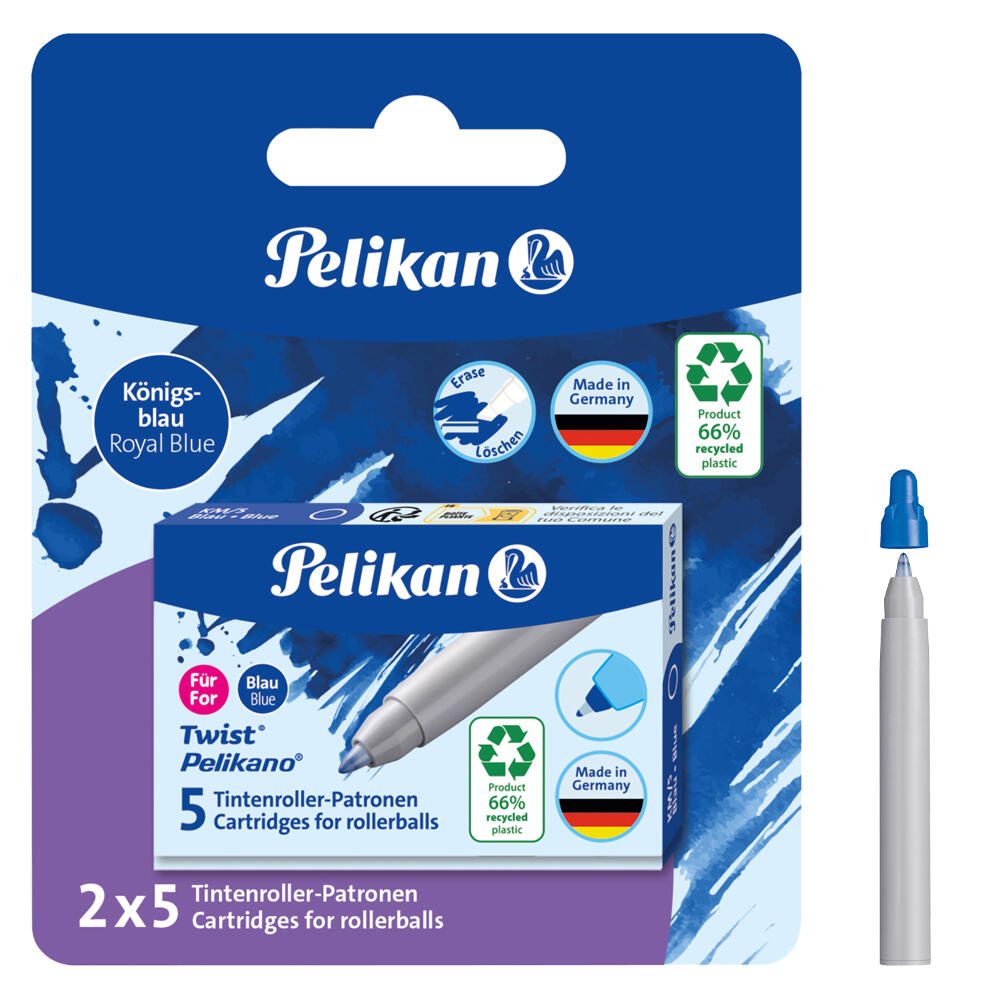 Die Pelikan Tintenrollerminen in der Farbe blau sind speziell für die Verwendung in den Schreibgeräten Pelikano und Twist konzipiert. Jede Packung enthält 10 Tintenrollerminen, die sich durch ihre feine und gleichmäßige Schreibqualität auszeichnen. Die Mine sorgt für ein angenehmes Schreibgefühl und ist ideal für den Alltag sowie für den Einsatz in Schule und Büro geeignet.