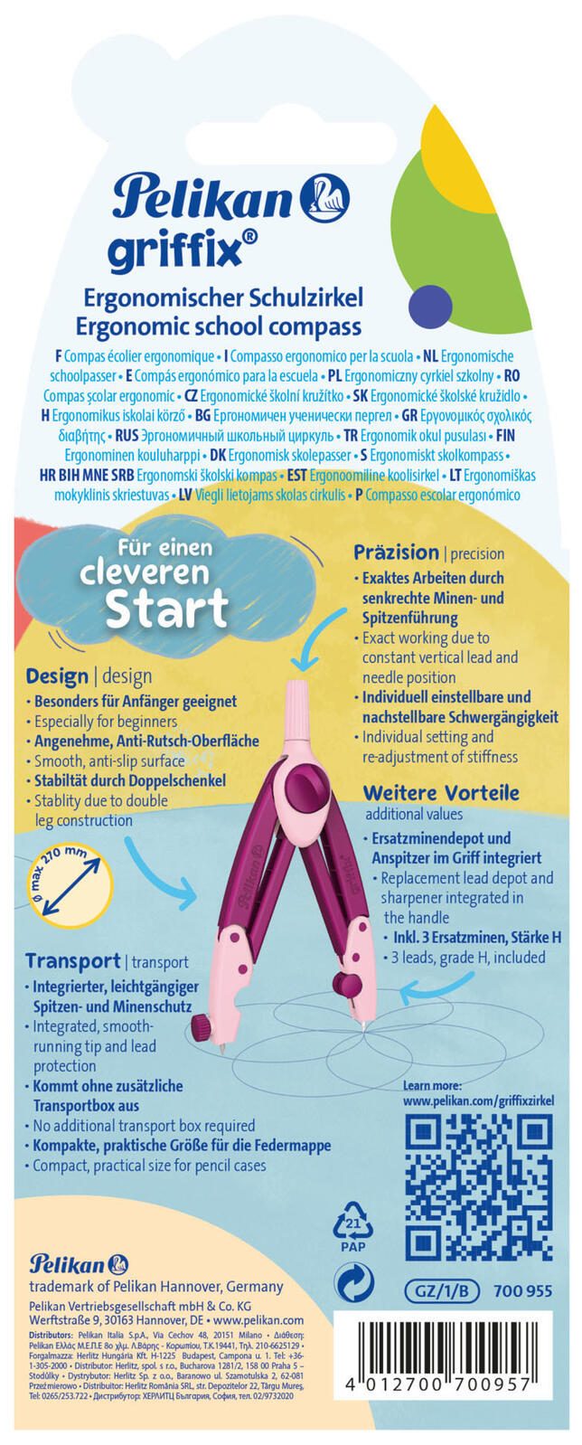Der Pelikan Zirkel in elegantem violett ist das ideale Werkzeug für Schüler, Studenten und kreative Köpfe, die Wert auf Präzision und Stil legen. Dieser Geometriezirkel überzeugt nicht nur durch seine ansprechende Farbgestaltung, sondern auch durch seine durchdachte Funktionalität. Mit einer robusten Feststellschraube ausgestattet, ermöglicht er dir eine einfache und sichere Handhabung, sodass du dich ganz auf deine geometrischen Zeichnungen konzentrieren kannst. Der Zirkel ist aus hochwertigem Kunststoff gefertigt, was ihn leicht und gleichzeitig langlebig macht. Dies ist besonders vorteilhaft für den täglichen Einsatz in der Schule oder bei kreativen Projekten. Die violette Farbe verleiht dem Zirkel eine besondere Note und macht ihn zu einem auffälligen Accessoire auf deinem Schreibtisch. Im Lieferumfang sind zudem Ersatzminen und ein Anspitzer enthalten, sodass du stets bestens ausgestattet bist. Dies bedeutet nicht nur eine längere Lebensdauer deines Werkzeugs, sondern auch weniger Unterbrechungen beim Arbeiten. Egal, ob du präzise Kreise zeichnen oder komplexe geometrische Figuren erstellen möchtest, der Pelikan Zirkel violett bietet dir die nötige Unterstützung, um deine Ideen perfekt umzusetzen. Die Kombination aus Funktionalität und ansprechendem Design macht diesen Zirkel zu einem unverzichtbaren Begleiter für alle, die ihre Kreativität entfalten möchten. Mit dem Pelikan Zirkel in violett wird jede Zeichnung zum Erlebnis, und du kannst dich auf die Qualität eines renommierten Herstellers verlassen.Technische Daten