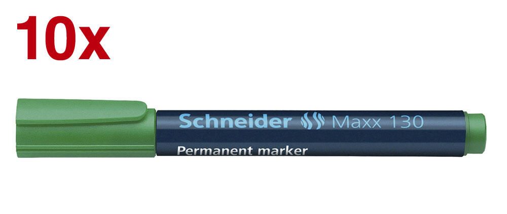 Der Schneider Permanentmarker 1.0 - 3.0 mm in Grün ist die ideale Wahl für all deine kreativen und praktischen Projekte. Mit seiner vielseitigen Rundspitze ermöglicht dieser Marker eine Strichstärke von 1.0 bis 3.0 mm, sodass du sowohl feine Linien als auch kräftige Schriftzüge mühelos gestalten kannst. Besonders hervorzuheben sind die Eigenschaften des Permanentmarkers: Er ist geruchsarm und somit angenehm in der Anwendung, während er gleichzeitig nachfüllbar ist, was ihn zu einer umweltfreundlichen Wahl macht. Die Tinte trocknet schnell, ist wischfest und wasserfest, sodass deine Kunstwerke und Notizen auch unter schwierigen Bedingungen bestehen bleiben. Zudem ist der Marker lichtbeständig, was bedeutet, dass die Farben auch nach längerer Zeit nicht verblassen. Der Schneider Permanentmarker eignet sich für fast alle Materialien, darunter Holz, Metall, Glas, Plastik und Karton. Dies macht ihn zu einem vielseitigen Werkzeug für Künstler, Handwerker und Büroangestellte gleichermaßen. Ob du Etiketten beschriftest, kreative Designs erstellst oder einfach nur Notizen machst, dieser Marker wird deine Anforderungen erfüllen. Mit einer Verpackungseinheit von 10 Stück hast du immer genügend Marker zur Hand, um deine Ideen in die Tat umzusetzen. Der runde Griff sorgt zudem für eine angenehme Handhabung, selbst bei längeren Schreib- oder Zeichensitzungen. Entscheide dich für den Schneider Permanentmarker 1.0 - 3.0 mm in Grün und erlebe die Vorteile eines hochwertigen Markers, der dir hilft, deine kreativen Visionen zum Leben zu erwecken.Technische Daten
