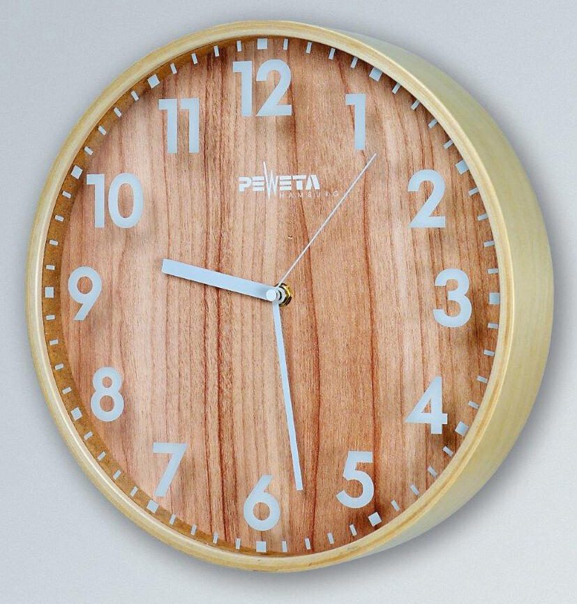 PEWETA Funkwanduhr mit Zahlen Ø 30 cm braun Holz