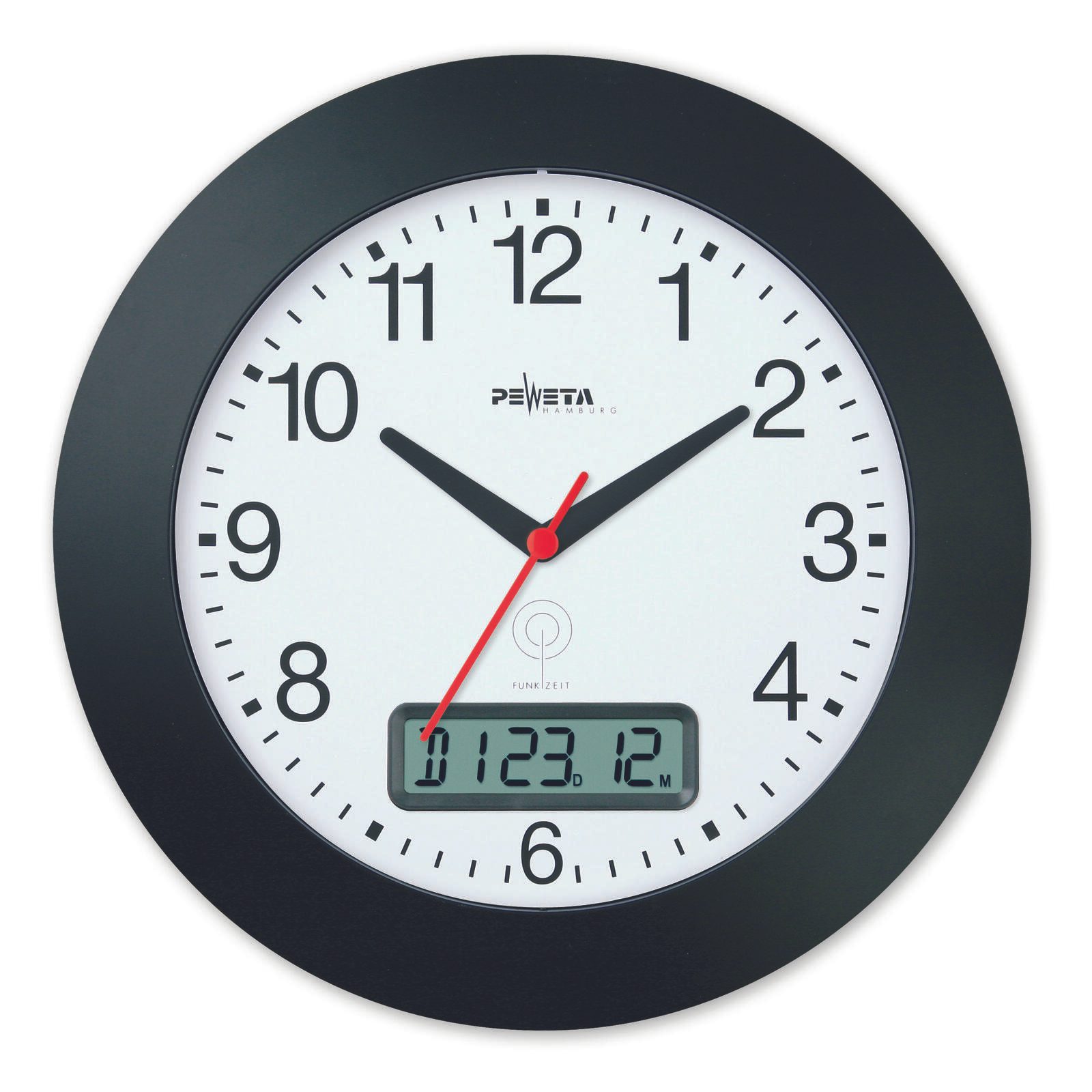 PEWETA Funkwanduhr Ø 30 cm schwarz
