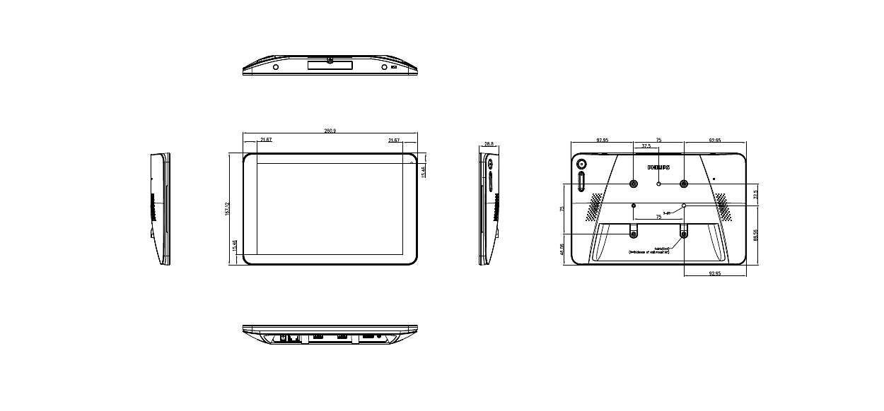 - Hoch & Querformat, Face-up, VESA 75x75 mm, 0,7 mm gehärtetes Sicherheitsglas