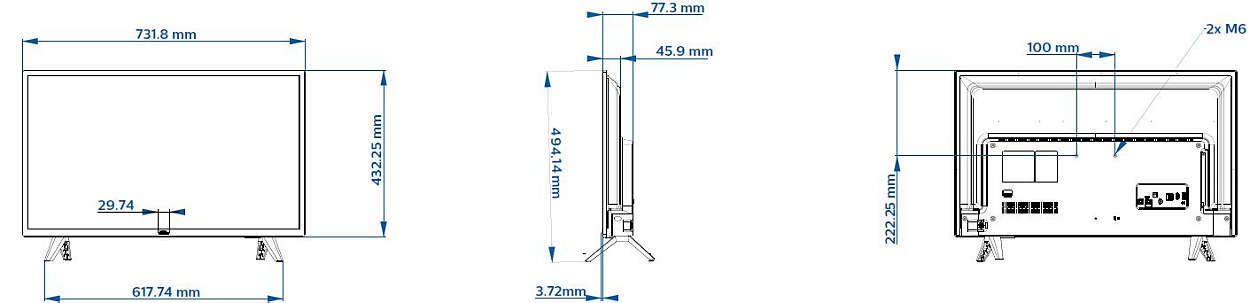Bildschirm ohne Fuß - 73. 2 cm x 7. 7 cm x 43. 2 cm x 4. 5 kg ¦ Bildschirm mit Fuß
