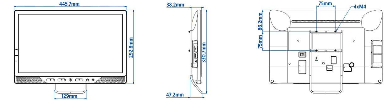 Hauptlautsprechers, IPTV, HTML5-Unterstützung, SmartInfo, kompatibel mit Schwesternrufsystem, Antimikrobielles Gehäuse, Beleuchtete Touch-Steuerungstasten, Galvanisch getrennter Kopfhörerausgang
