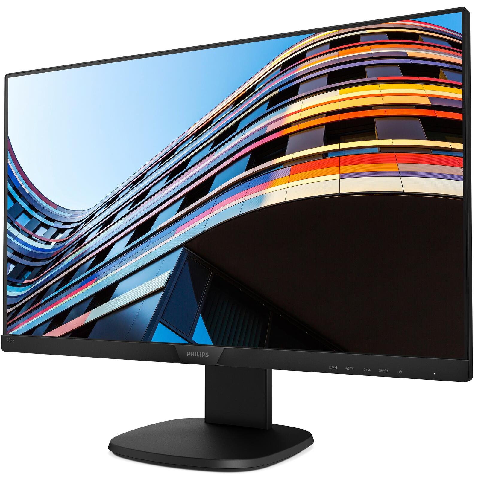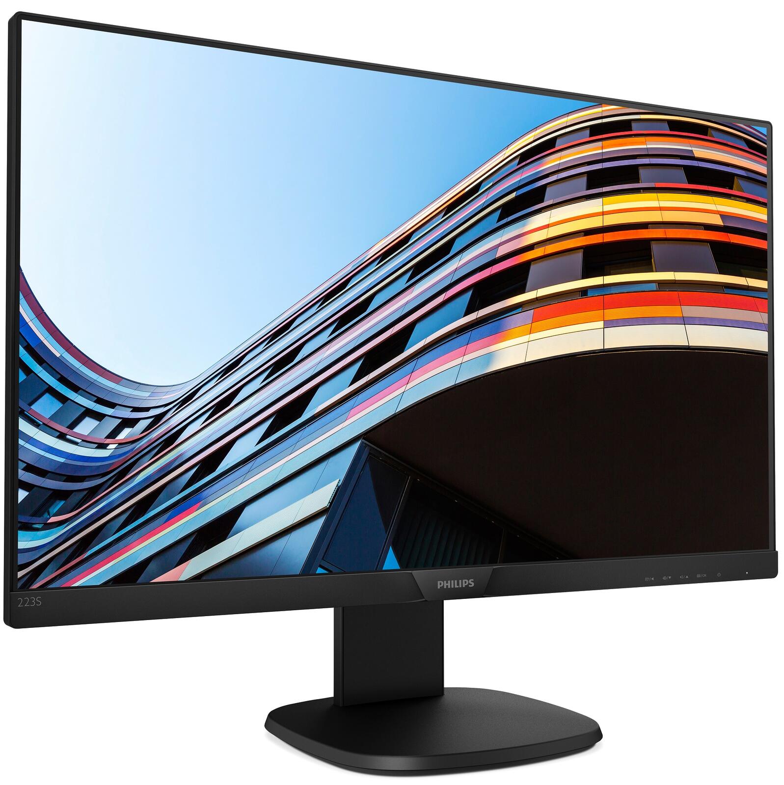 Der S-line-Monitor sorgt für Unternehmenseffizienz. Dank des extra breiten IPS-Bildschirms mit SoftBlue Technology ist er hervorragend für augenschonendes Arbeiten geeignet. Der höhenverstellbare, rahmenlose Bildschirm ermöglicht es, mehrere