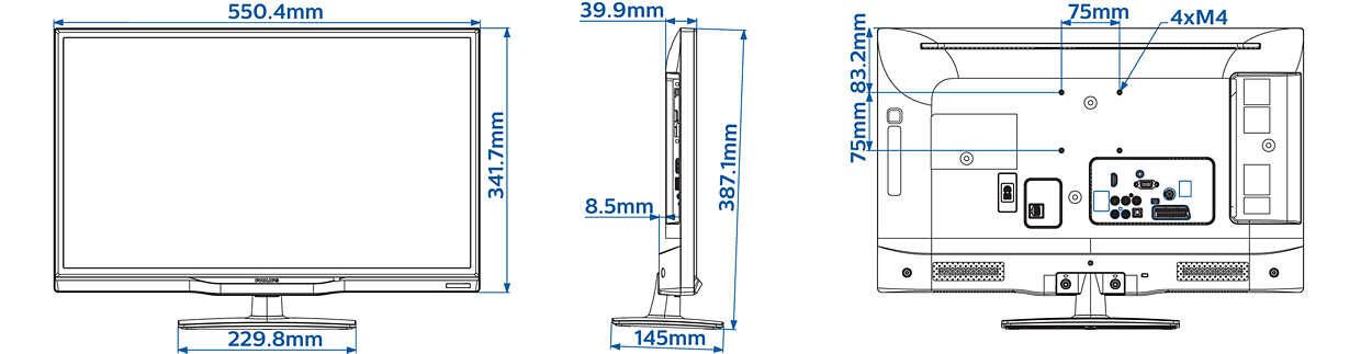 Bildschirm ohne Fuß - 55 cm x 4. 8 cm x 34. 2 cm x 3. 3 kg ¦ Bildschirm mit Fuß - 55 cm x 14. 4 cm x 38. 7 cm x 3. 5 kg