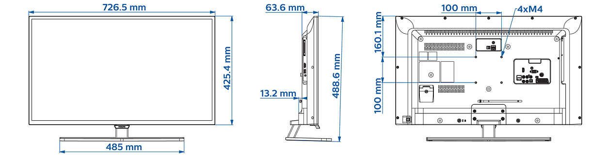 Fuß - 72. 7 cm x 6. 4 cm x 42. 5 cm x 5 kg ¦ Bildschirm mit Fuß - 72. 7 cm x 17. 9 cm x 48. 9 cm x 6. 3 kg