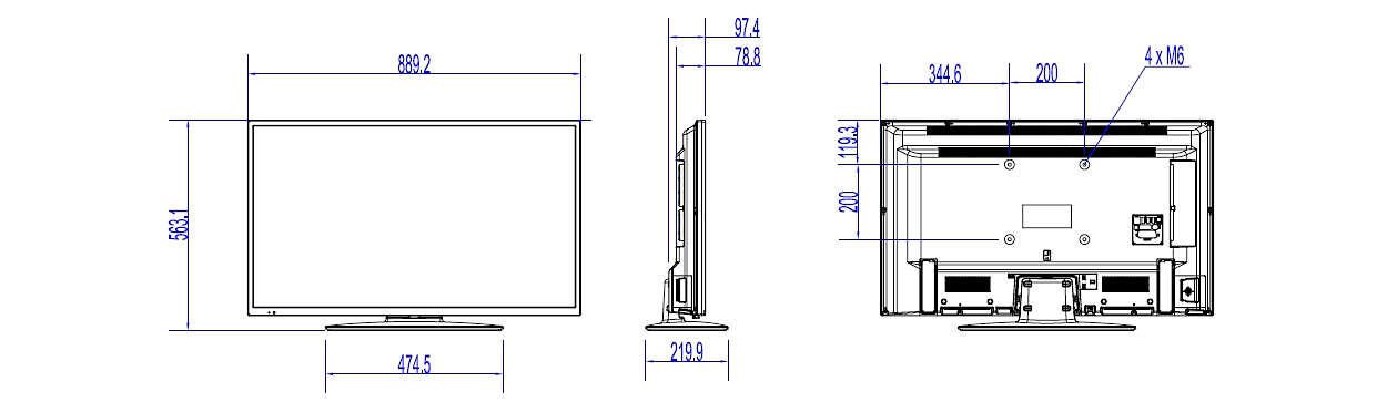 Bildschirm ohne Fuß - 88. 9 cm x 9. 7 cm x 52. 3 cm x 6. 6 kg ¦ Bildschirm mit Fuß - 88. 9