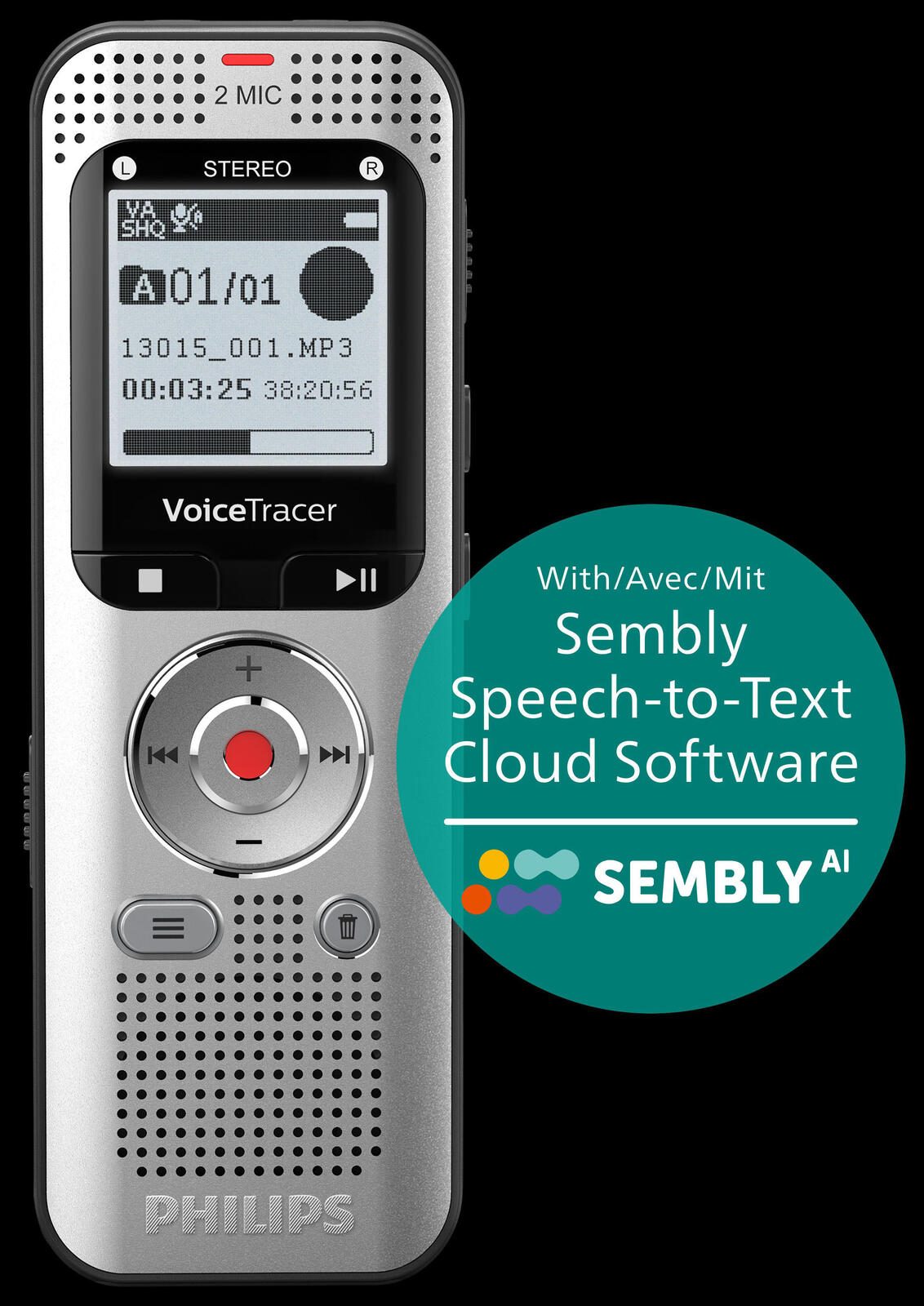 - Lieferung inkl.: 2 AAA-Batterien, USB-Kabel, Kopfhörer, Gutschein für Spracherkennungssoftware von Sembly