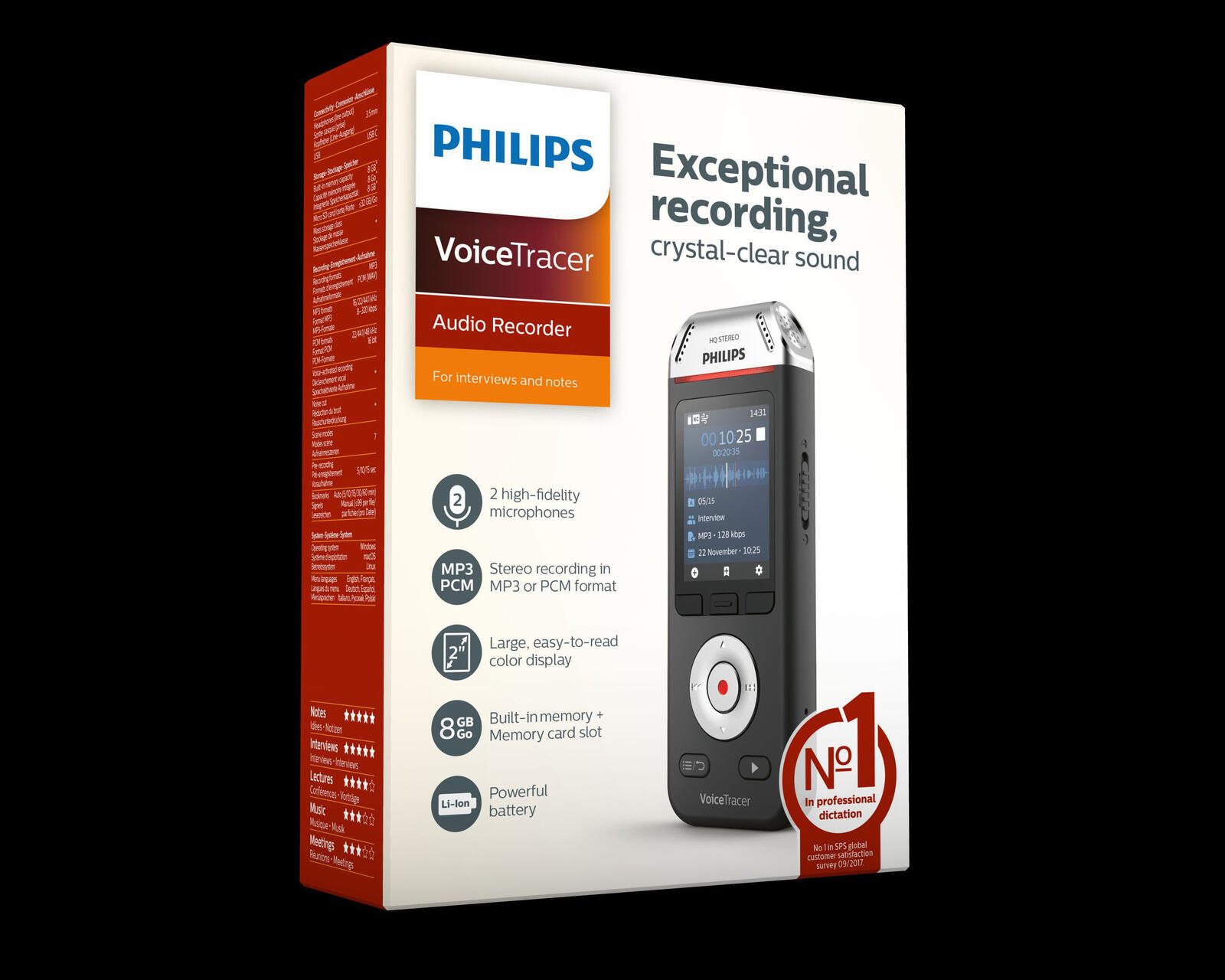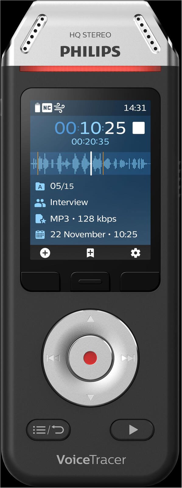 Der PHILIPS Audiorecorder DVT2110 überzeugt nicht nur durch seine Aufnahmequalität, sondern auch durch sein kompaktes und leichtes Design. Egal, ob du unterwegs bist oder im Büro - dieser Audiorecorder passt problemlos in deine Tasche und ist immer einsatzbereit.