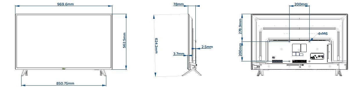 Bildschirm ohne Fuß - 97 cm x 8. 05 cm x 56. 25 cm x 7. 2 kg ¦ Bildschirm mit Fuß - 97 cm x