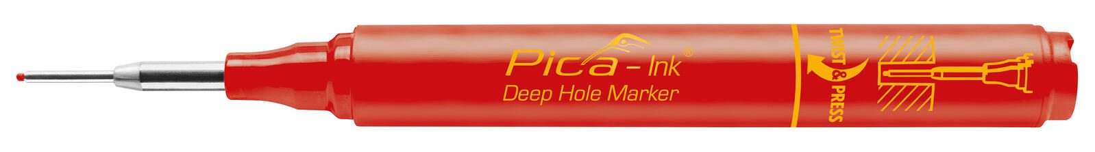 Der Marker besitzt eine runde Griffart, die eine einfache Handhabung und kontrolliertes Schreiben gewährleistet. Die rote Schreibfarbe ist speziell auf die Anforderungen beim Markieren in Tiefenlöchern abgestimmt und sorgt für klare, dauerhafte Linien. Der Tieflochmarker ist nicht offen lagerfähig, was bedeutet, dass er bei Nichtgebrauch sicher verschlossen aufbewahrt werden sollte, um die Tinte vor dem Austrocknen zu schützen.