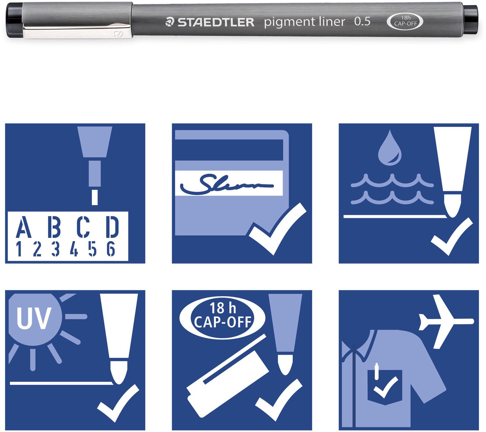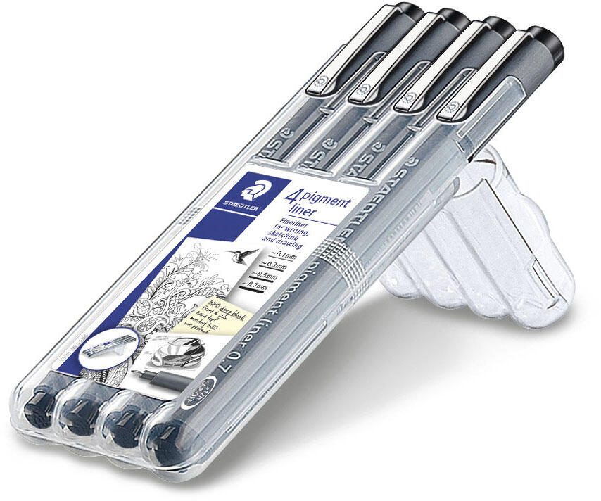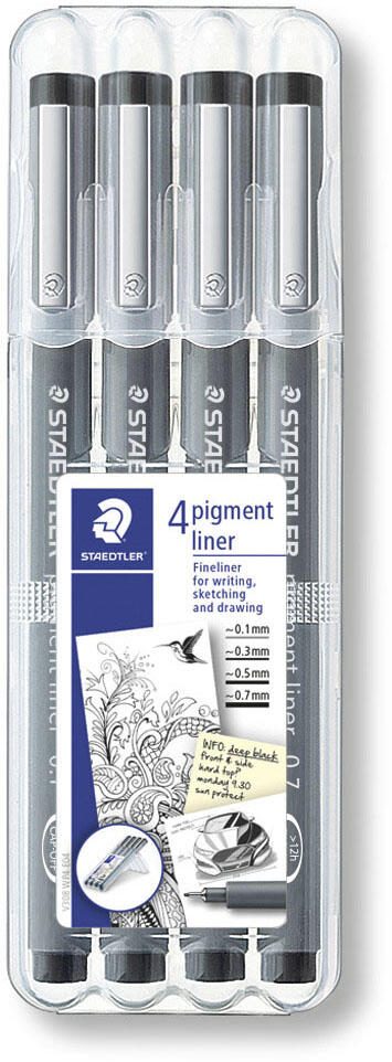 STAEDTLER Pigment Liner 308 Fineliner 0.1 + 0.3 + 0.5 + 0.7 mm Schwarz