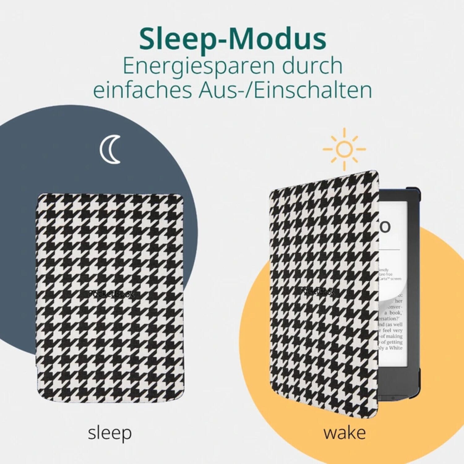 Die Schutzhülle unterstützt die Sleep-Cover-Funktion der genannten PocketBook-Geräte und hilft so die Batterieladung zu schonen. Beim Schließen der Schutzhülle wird das Gerät automatisch in den Sleep-Modus versetzt. Beim erneuten Öffnen des Covers wird der E-Reader reaktiviert.