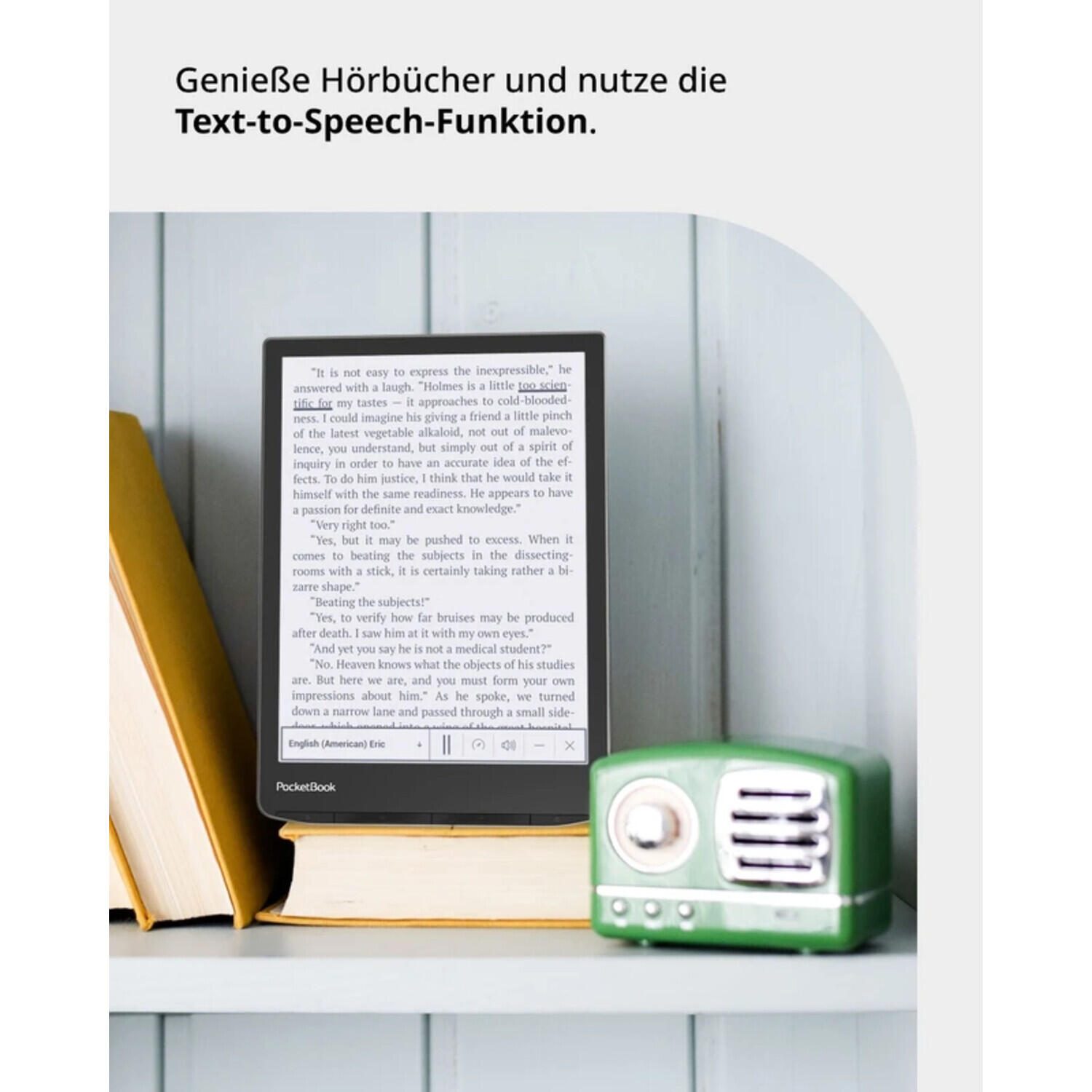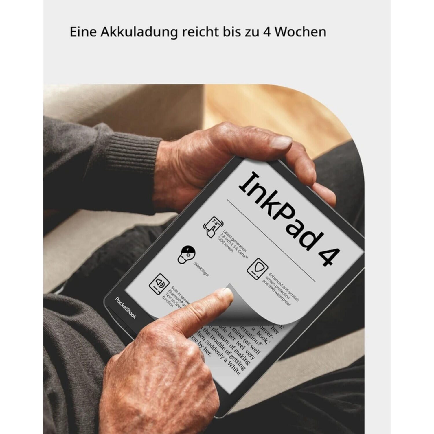 Ob E-Book oder Hörbuch – der Leser PocketBook InkPad 4 unterstützt beides. Hörbuchliebhaber*innen profitieren vom eingebauten Lautsprecher, Bluetooth-Funktion und der Text-to-Speech-Vorlesefunktion. Kompatibel mit sechs gängigen Audioformaten, lässt sich der E-Reader auch mit Kopfhörern nutzen. Wassergeschützt und mit verbessertem Schutz gegen Kratzschäden ausgestattet, hält der InkPad 4 auch anspruchsvollen Bedingungen stand – ob am Strand oder in der Badewanne.