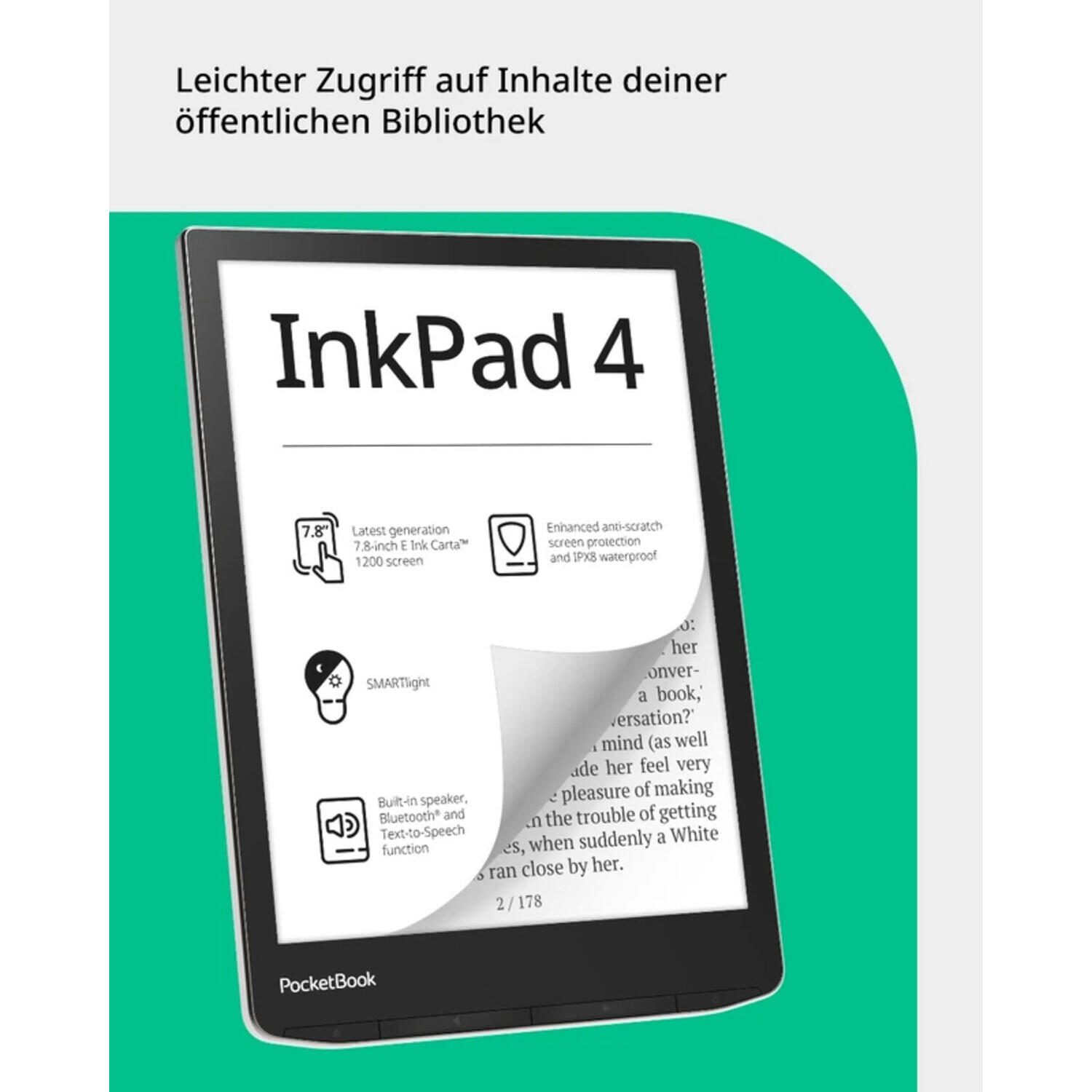 PocketBook InkPad 4 eBook-Reader - Stardust Silver 7,8" E-Ink Carta™ 1200 (1404 × 1872), 32 GB interner Speicher, 1 GB