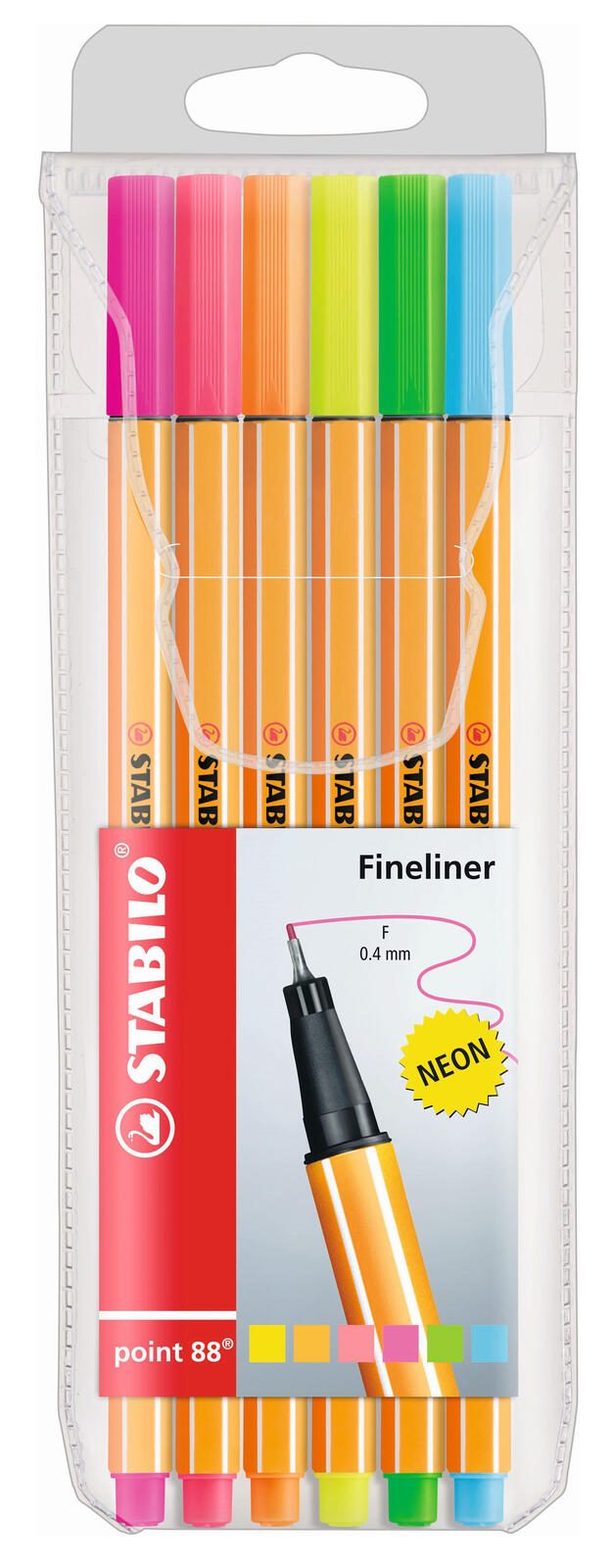 Der STABILO Point 88 Fineliner mit einer Strichstärke von 0.4 mm ist der perfekte Begleiter für kreative Köpfe und präzise Schreibarbeiten. Mit seiner metallgefassten Spitze ermöglicht dieser Fineliner ein exaktes und sauberes Zeichnen sowie Schreiben. Die besondere Tinte auf Wasserbasis ist dokumentenecht, non-permanent und wischfest, was bedeutet, dass deine Notizen und Kunstwerke lange Zeit in bester Qualität erhalten bleiben. Die Farbpalette des Point 88 ist ebenso beeindruckend wie vielseitig. Mit sechs verschiedenen Farben – gelb, orange, rosa, pink, grün und blau – kannst du deiner Kreativität freien Lauf lassen und deine Projekte individuell gestalten. Ob für das Skizzieren, Ausmalen oder für das Schreiben von Notizen, die lebhaften Farben bringen Schwung in deine Arbeiten und sorgen für eine ansprechende Optik. Ein weiteres Highlight ist der ergonomische Sechskantgriff, der ein angenehmes Schreibgefühl vermittelt und ein Abrutschen während des Gebrauchs verhindert. So kannst du auch längere Zeit ohne Ermüdung arbeiten. Die handliche Größe und das leichte Gewicht machen den STABILO Point 88 zu einem idealen Schreibgerät für Schule, Studium oder Büro. Mit einem Pack bestehend aus sechs Finelinern hast du immer die richtige Farbe zur Hand, um deine Ideen zum Leben zu erwecken. Der STABILO Point 88 ist nicht nur ein praktisches Werkzeug, sondern auch ein stilvolles Accessoire, das in keinem Schreibtisch fehlen sollte. Erlebe die Faszination des Schreibens und Zeichnens mit diesem hochwertigen Fineliner und entdecke die Freude an Farben und Formen.Technische Daten