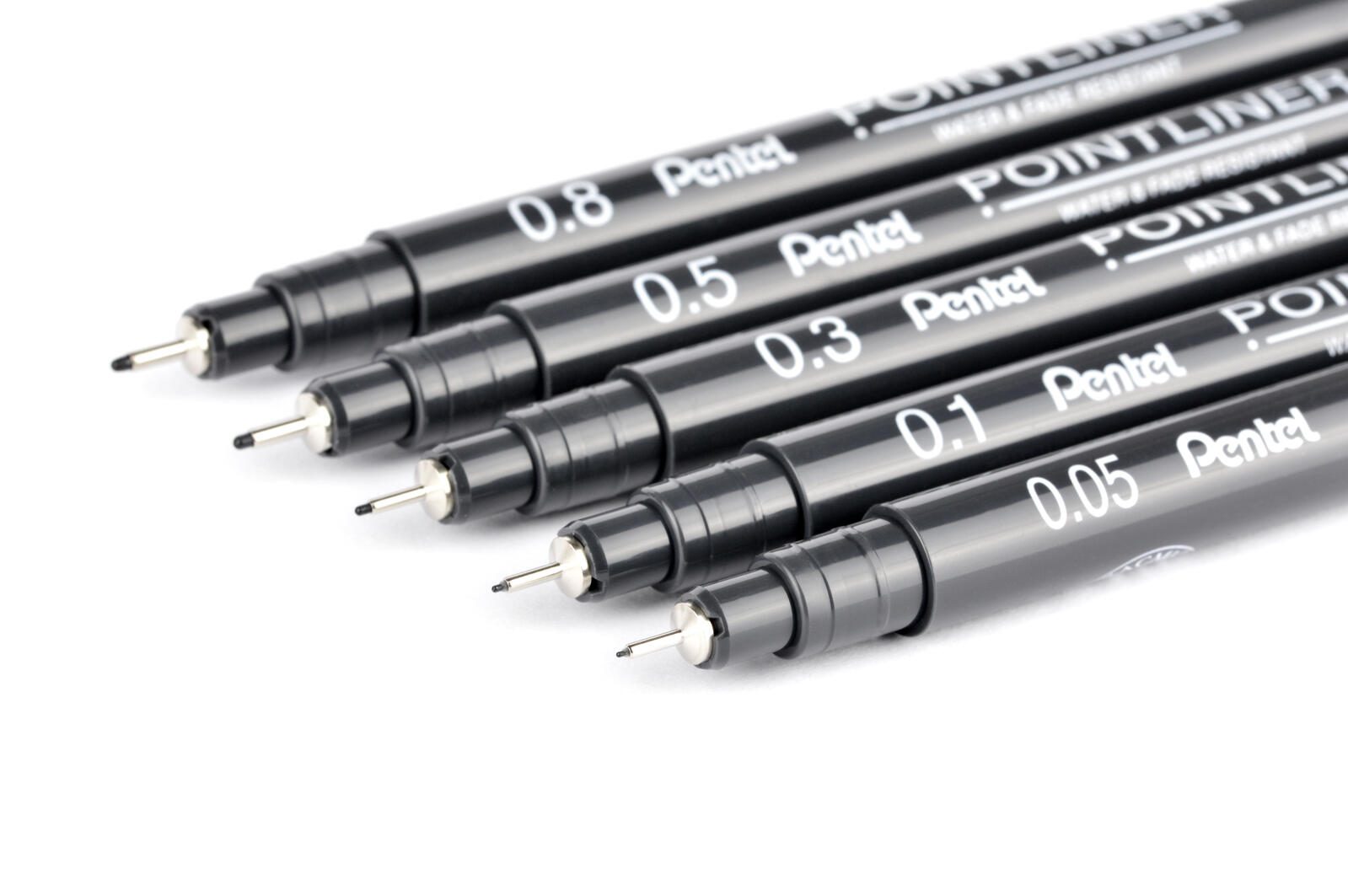 Pentel Fineliner Pointliner 0.05 + 0.1 + 0.2 + 0.3 + 0.5 + 0.8 mm Schwarz