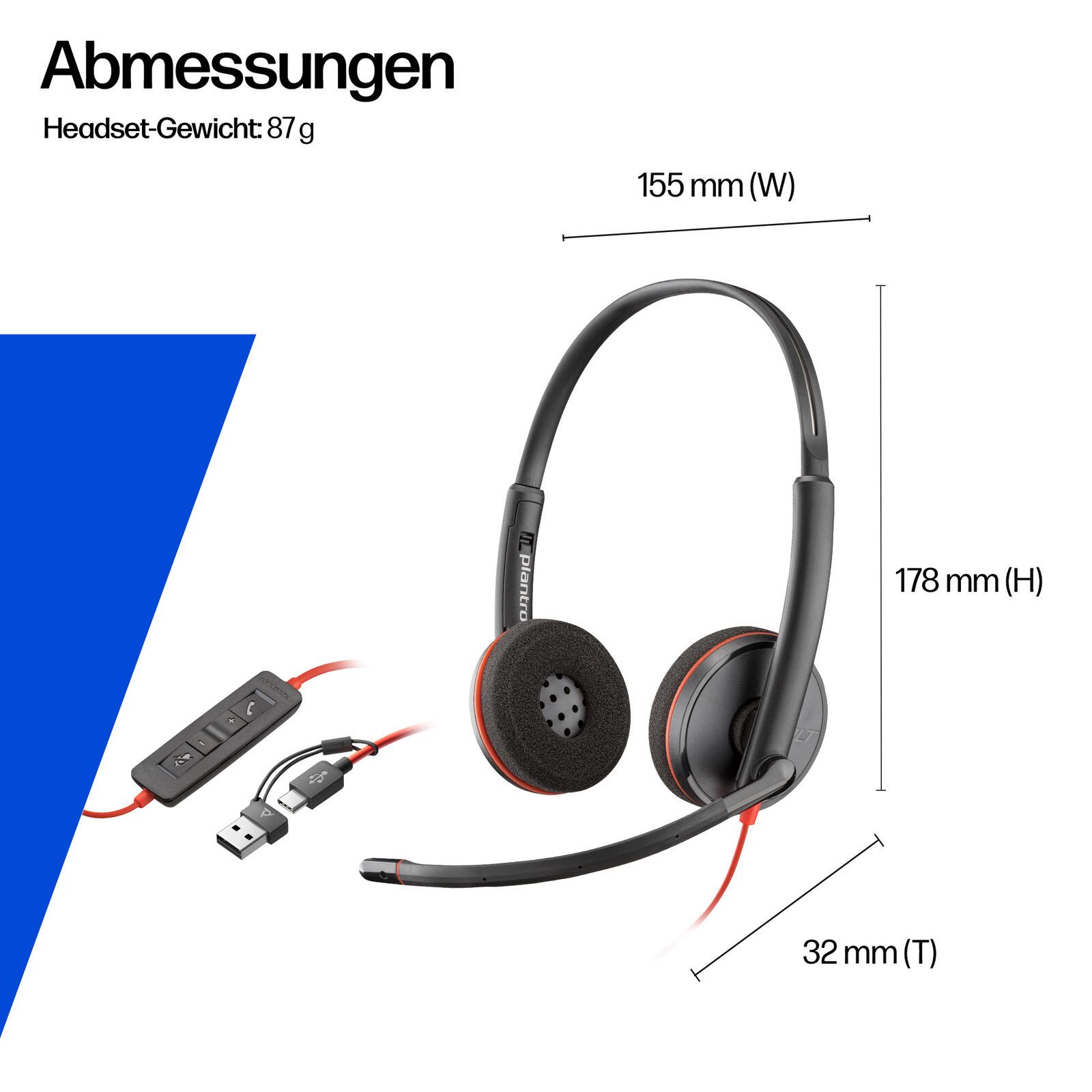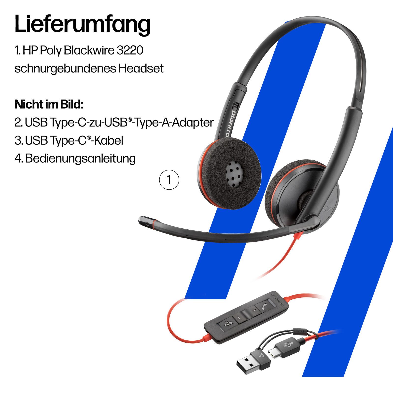 Poly Blackwire 3220 USB-C Stereo-Headset + USB-C/A-Adapter