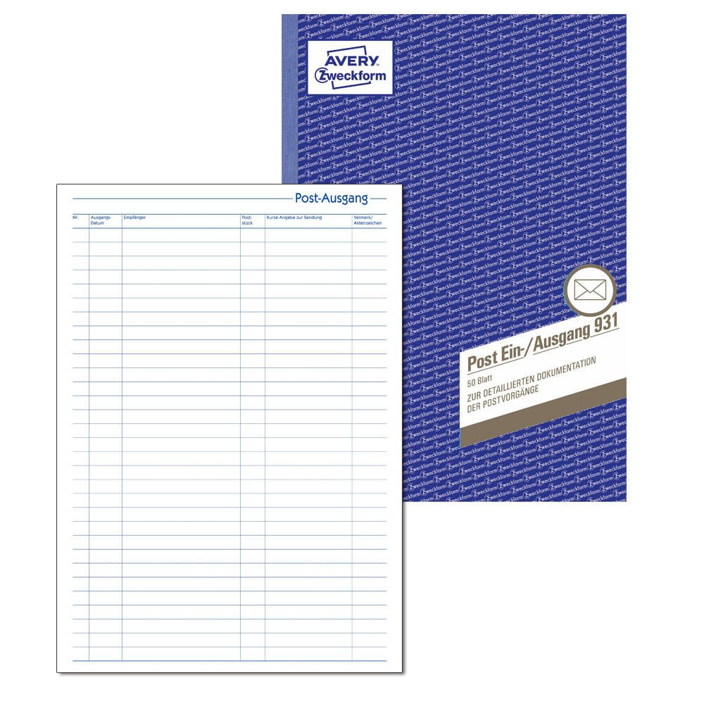 AVERY Zweckform Formularbuch Post-Eingang-/Ausgangsbuch 931 DIN A4 50 Seiten
